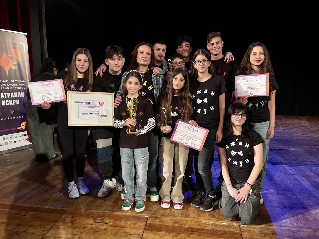 Приключи Третото издание на Националния фестивал на детско-юношеското театрално изкуство „Театрални искри“ в град Казанлък, откъдето нашите представители (Спас Ангелов, Мелиса Ерхан, Димитър Търгов, Пенко Петров, Никол Атанасова, Иванина Иванова, Кристияна Иванова, Кристиан Радевски, Алейна Борисова, Ирен Радева, Стоян Георгиев, Емма Радева, Жанет Костадинова, Мария Димитрова или Театрално студио „Джан-джун“ , заедно с танцов състав „Светулки“) се завърнаха с куп награди: ■ Първа награда във втора възрастова група;■ наградата на НАТФИЗ „Кръстьо Сарафов“, награда „Изгряваща звезда“ за Ирен Радева;■ награда „Изгряваща звезда“ за Стоян Георгиев;■ Поощрителна награда за изключително актьорско…