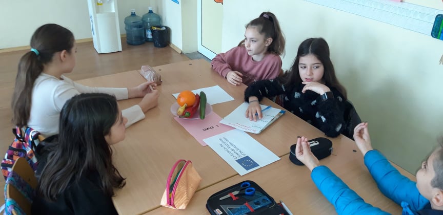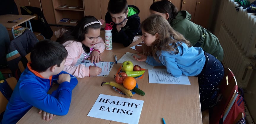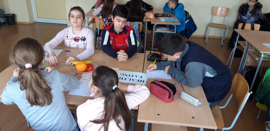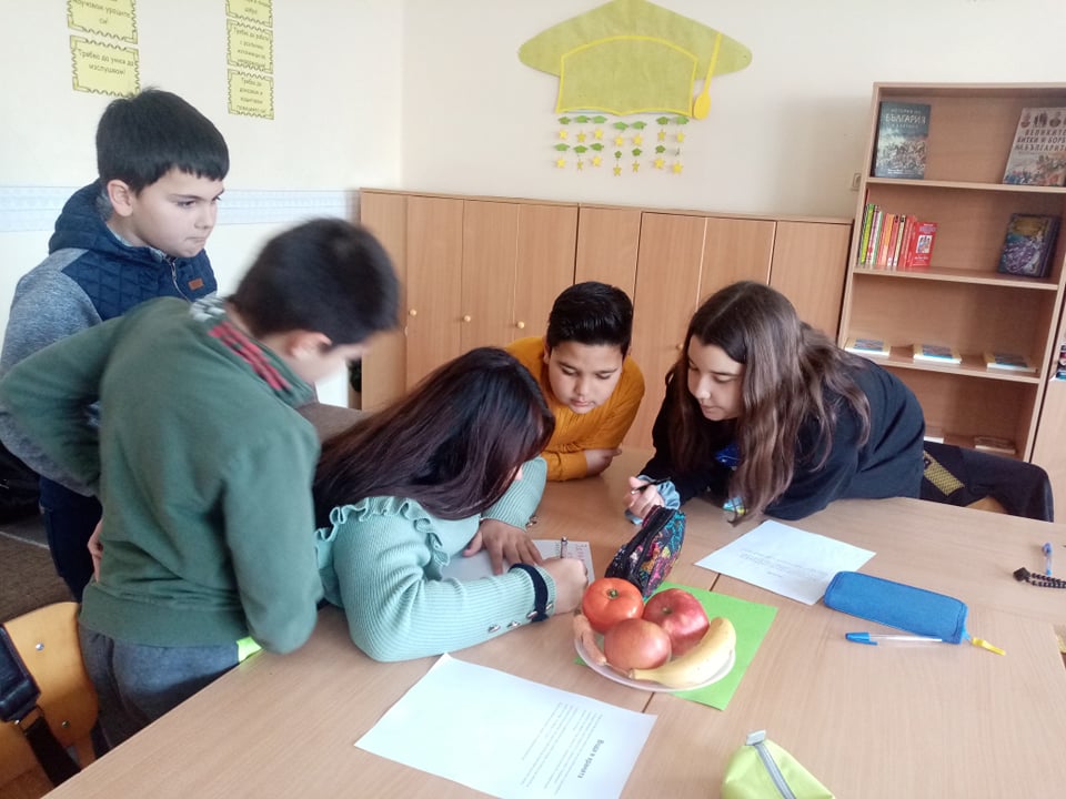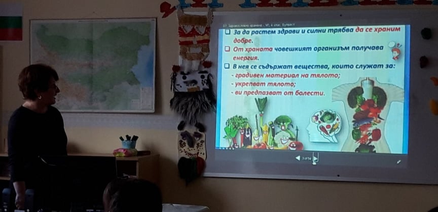 Госпожа Атанаска Костова и нейните ученици от четвърти клас разговаряха за това какво трябва да включва пълноценното хранене. Учениците, работейки в екипи, изготвиха примерни менюта за закуска, обяд и вечеря.