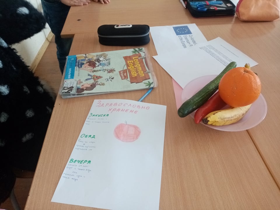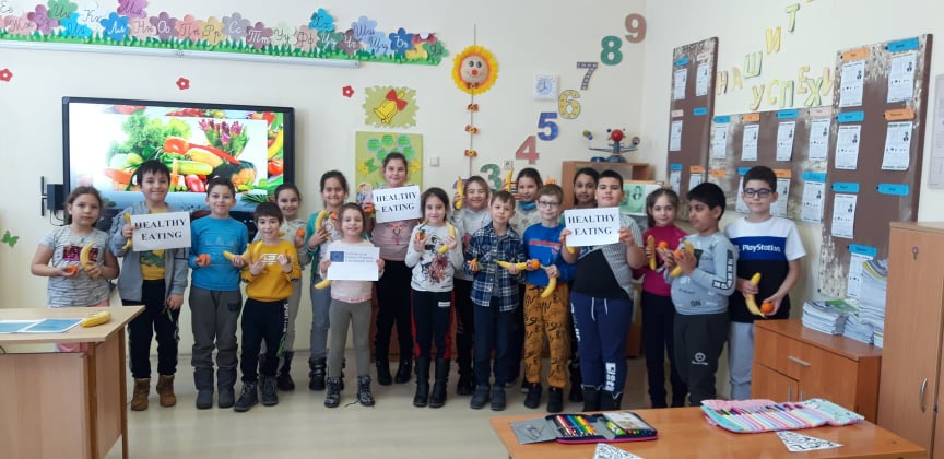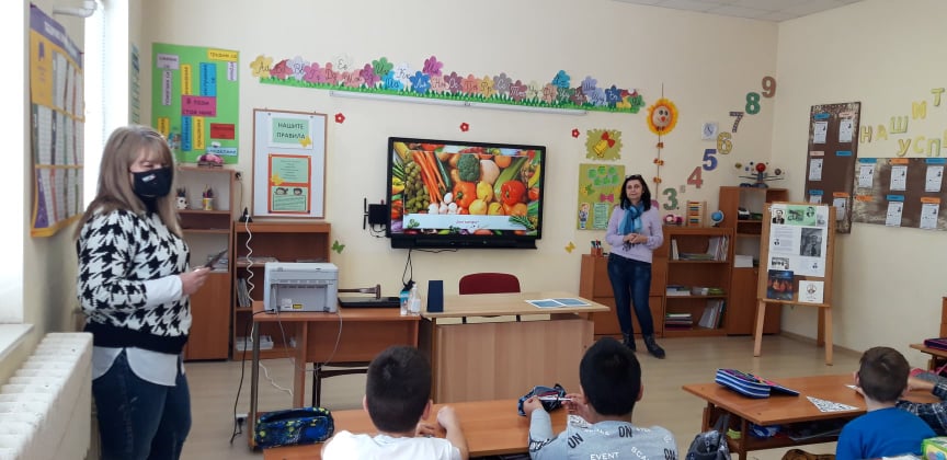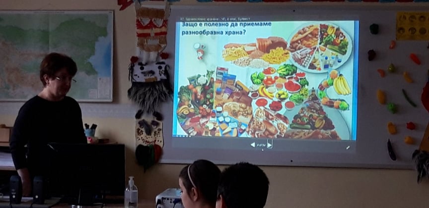 Госпожа Мария Василева запозна своите ученици от втори клас с ползите от различните видове плодове и зеленчуци за организма. Учениците научиха за хранителната пирамида и какво е полезно и кое трябва да се избягва в менюто.