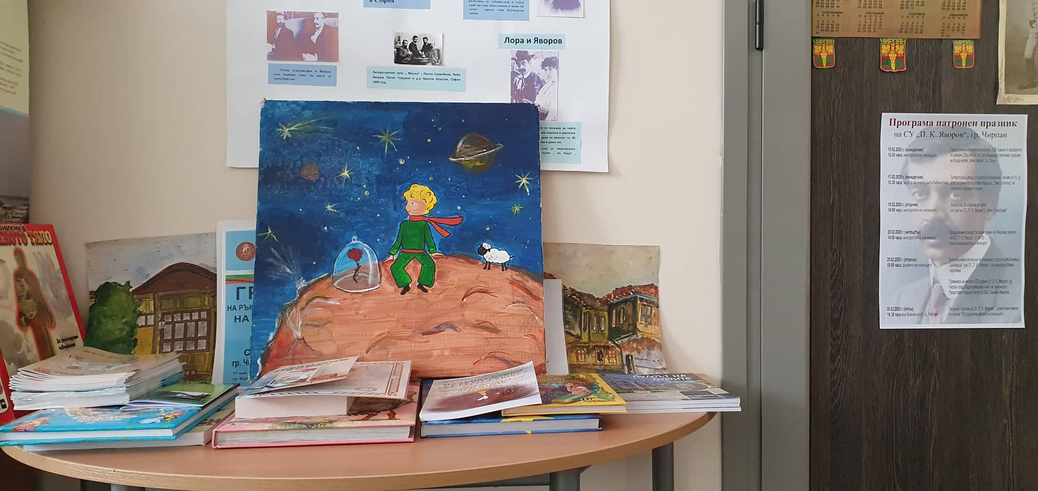 Днес децата дариха на училищната библиотека илюстрация – акварел по “Малкият принц” на Антоан дьо Сент-Екзюпери. Картината е дело на талантливите ученички от 6г. клас Мария Иванова и Галена Гюзова.