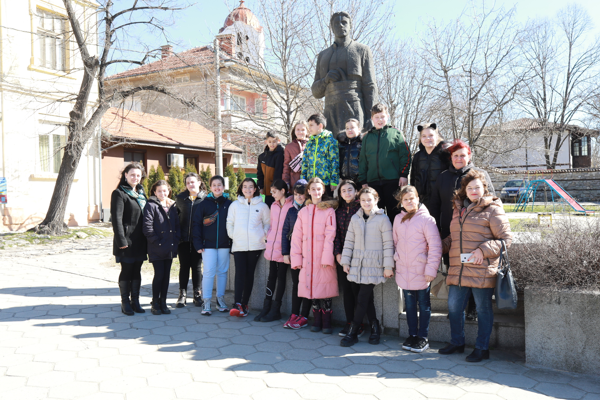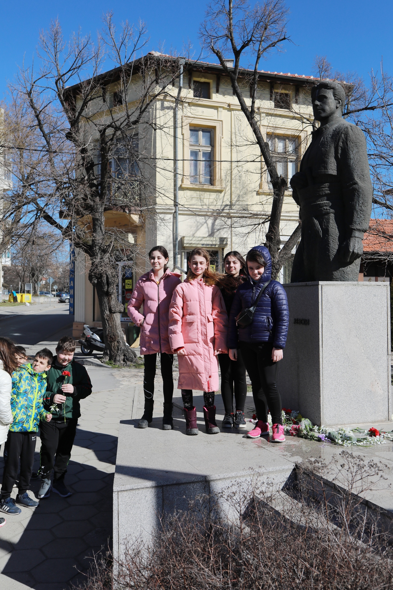 Учители и ученици заедно вдъхновено изпълниха Ботевата творба точно в 12:00 часа. След това се отправиха към паметника на Левски в града, където, поднасяйки цветя, засвидетелстваха своята почит към паметта на великия българин.