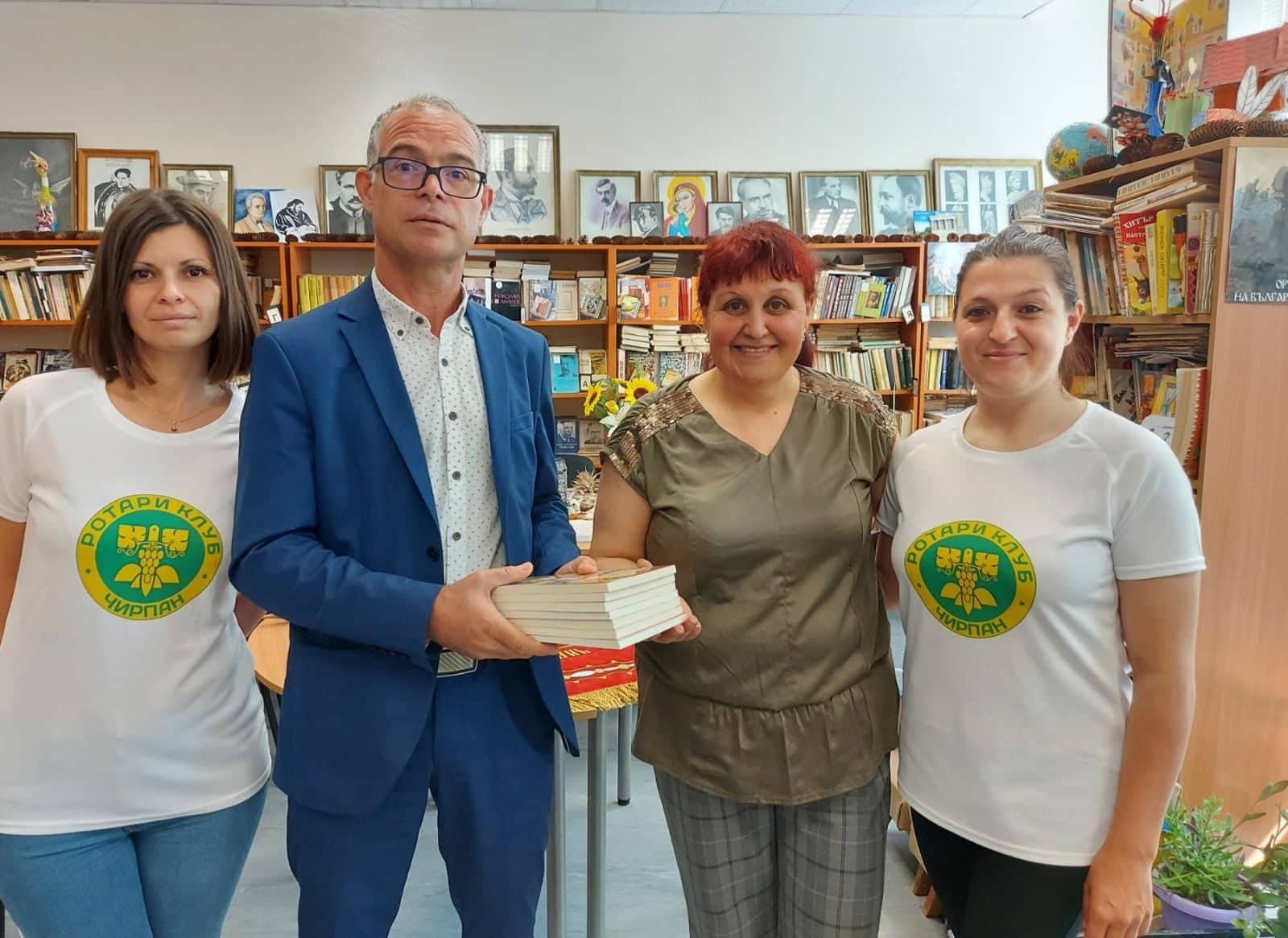 Благородното начинание бе осъществено лично от г-н Иван Станчев (президент на Ротари клуб – Чирпан), г-жа Анелия Брезелиева (секретар) и г-жа Мария Цифаркова, член на клуба. След като зарадваха първокласниците в гимназията, почетните гости посетиха училищната библиотека и подариха седем броя детски книжки: