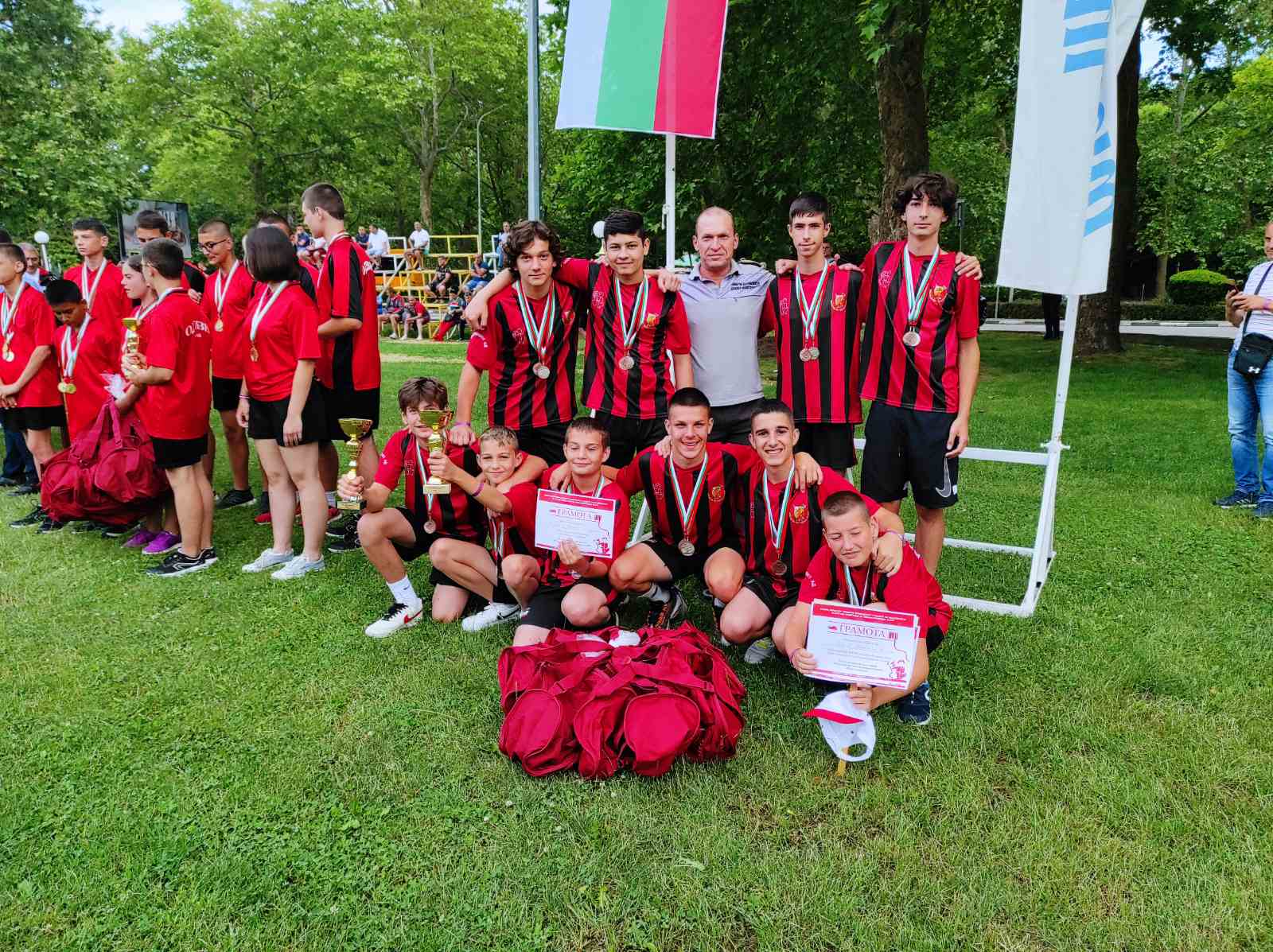 Момчетата на СУ „Пейо Кр. Яворов“: Георги Панчев от 6. в клас, Христомир Димитров от 6. в клас, Ивайло Ивайлов от 7. а клас, Михаил Вълчев от 7. в клас, Алекс Копаров от 7 г. клас, Мартин Игнатов, Павел Христов, Пламен Колев, Димитър Търгов и четиримата от 9. а клас и Пенко Петров от 9.б клас, които станаха областни първенци преди месец, се изкачиха на почетната стълбичка и заеха третото място, което е огромен успех както за нашето училище, за град Чирпан, така и за област Стара Загора. Разбира се за този успех заслуга имат г-н Данчо Игнатов –инспектор при РС ПБЗН гр. Чирпан, г-н Недялко Николов- младши инспектор при РС ПБЗН гр. Чирпан и г-н Манол Желев – преподавател по история и георафия в СУ „Пейо Крачолов Яворов“, на които благодарим от сърце!