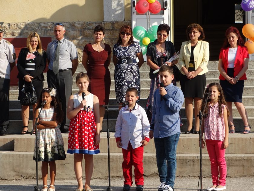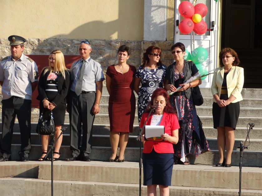 За да е спорна и успешна новата учебна година, малката Никол заби силно първия училищен звънец. Водени от училищното ръководство и гостите на този тържествен ден, развълнуваните първокласници бяха въведени в своите класни стаи.
