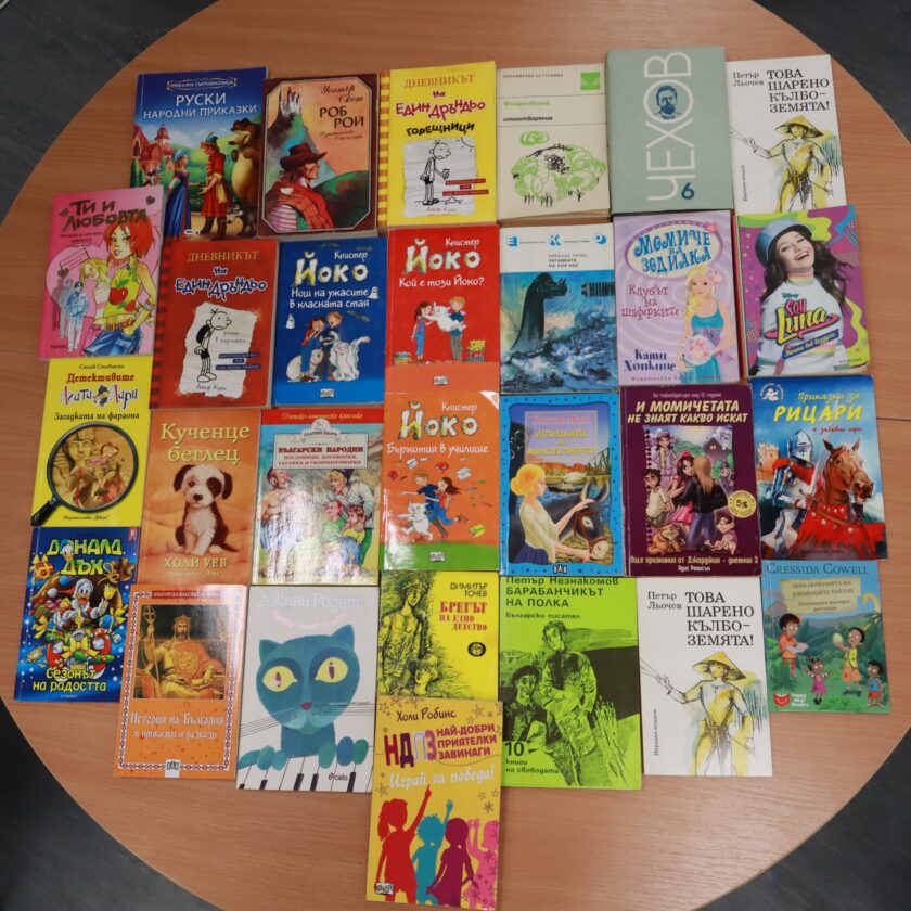 Списък на дарените нови и запазени детски книжки от г-н Трифон Йорданов-директор на СУ „П. К. Яворов“, гр. Чирпан, г-жа Кина Филипова-Йорданова-старши учител по музика, г-жа Ирена Атанасова-учител в ЦОУД, г-жа Янка Петрова-стар