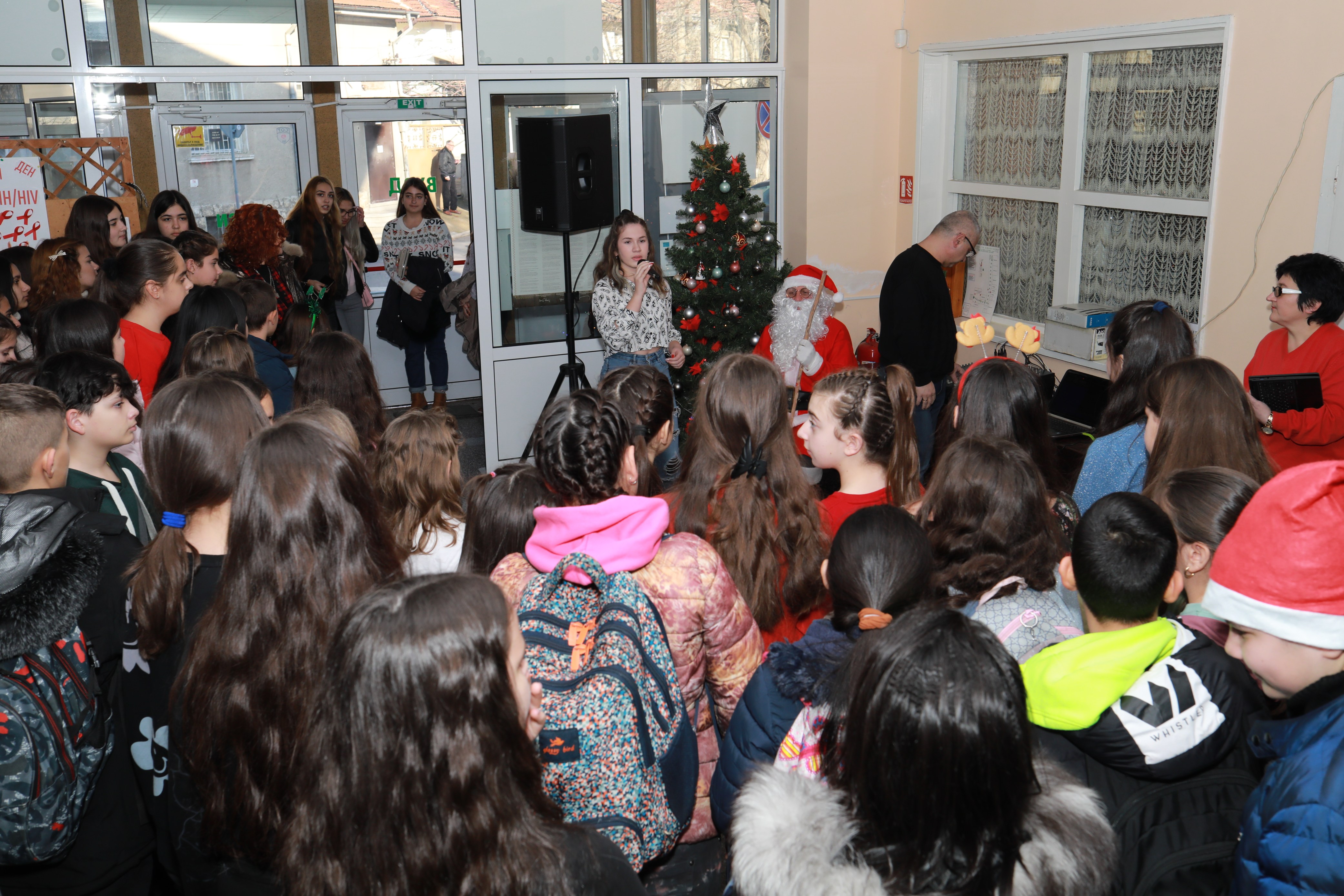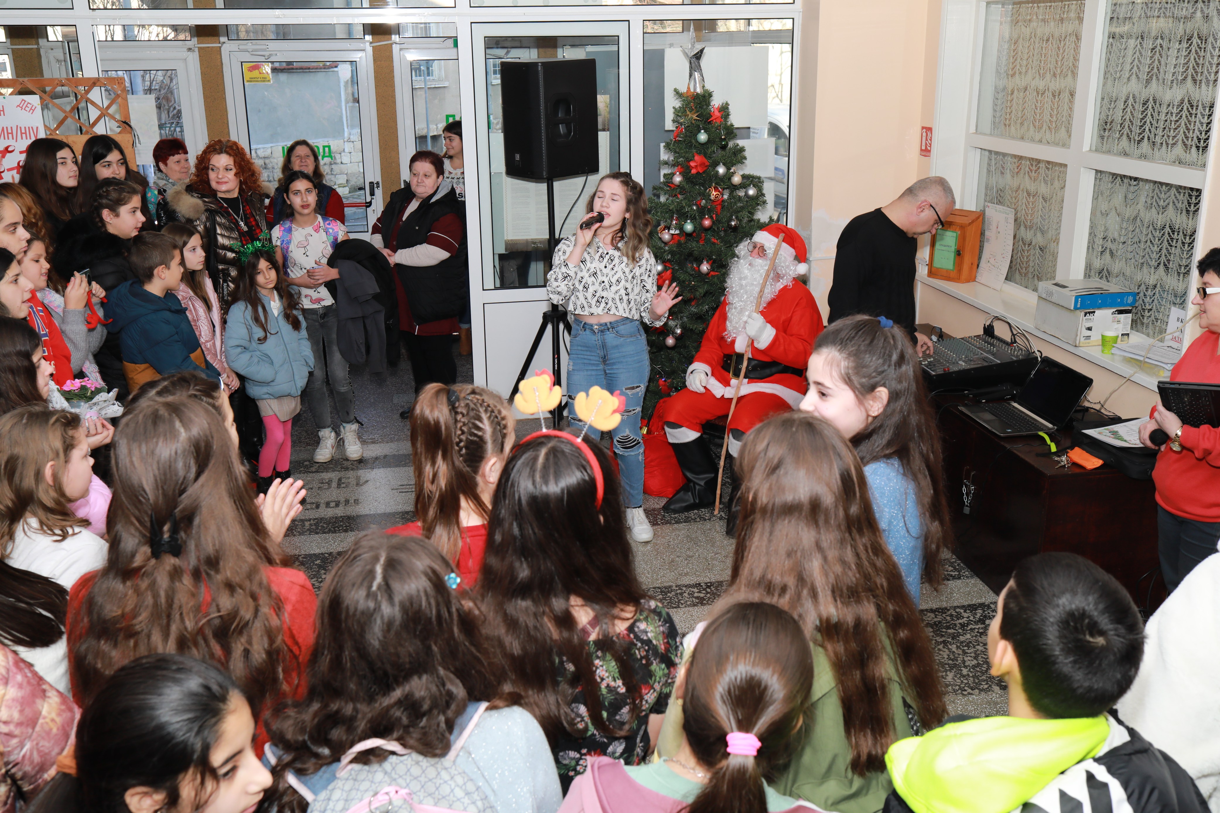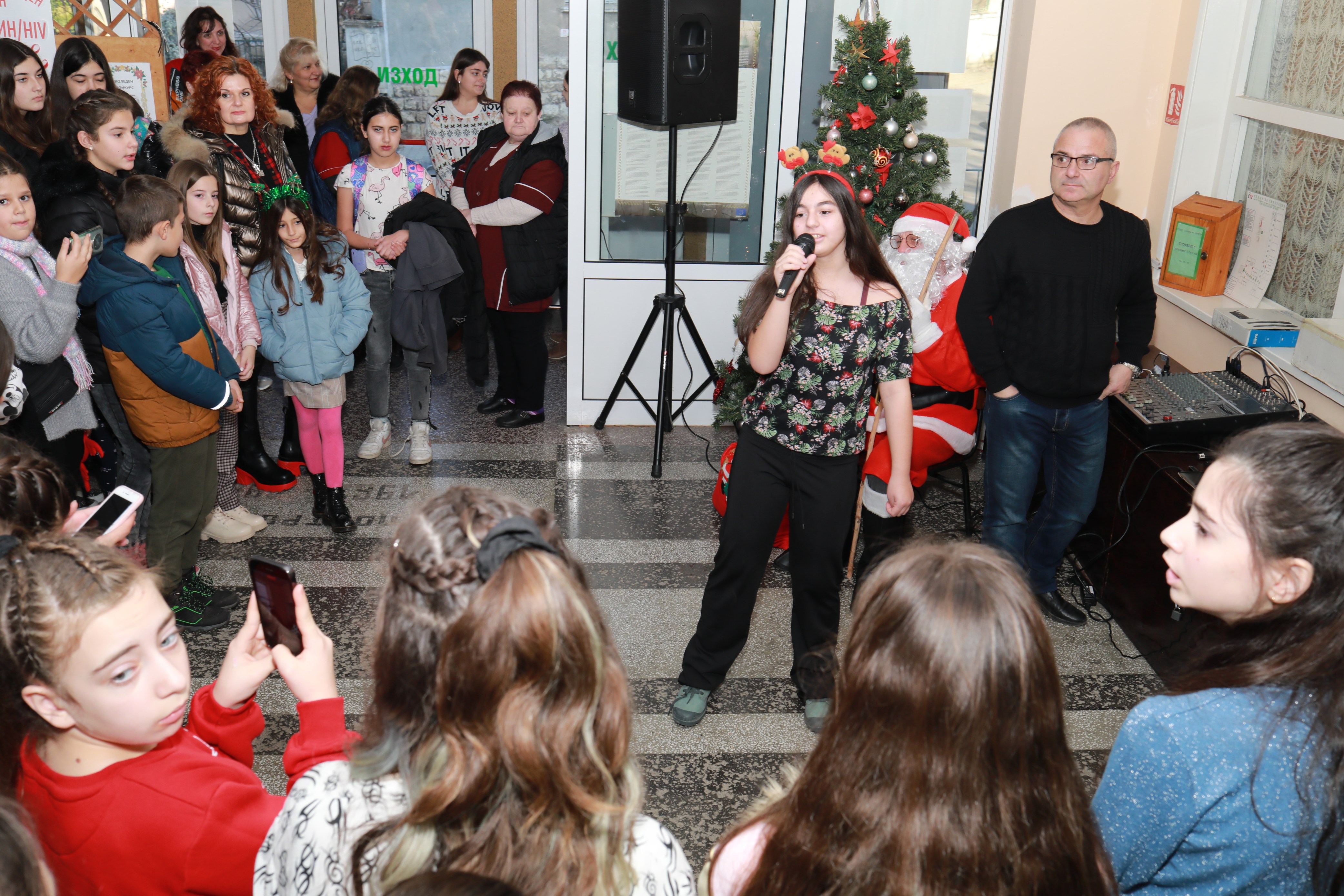 За доброто настроение на всички учители и ученици много талантливи малки певци пяха коледни песни и това бяха: Ивелина Манева от 6. б клас, Памела Реджеб от 5. в, Анелия Желева от 7. б клас, Гергана Панева от 5. а клас, Анна Петрова от 7. б клас, Ралица Колева от 5. в клас, Рая Попова от 5. в клас, Мария Маркова от 5. в клас, както и вокална група „Бим бам“ на г-жа Мария Петрова.