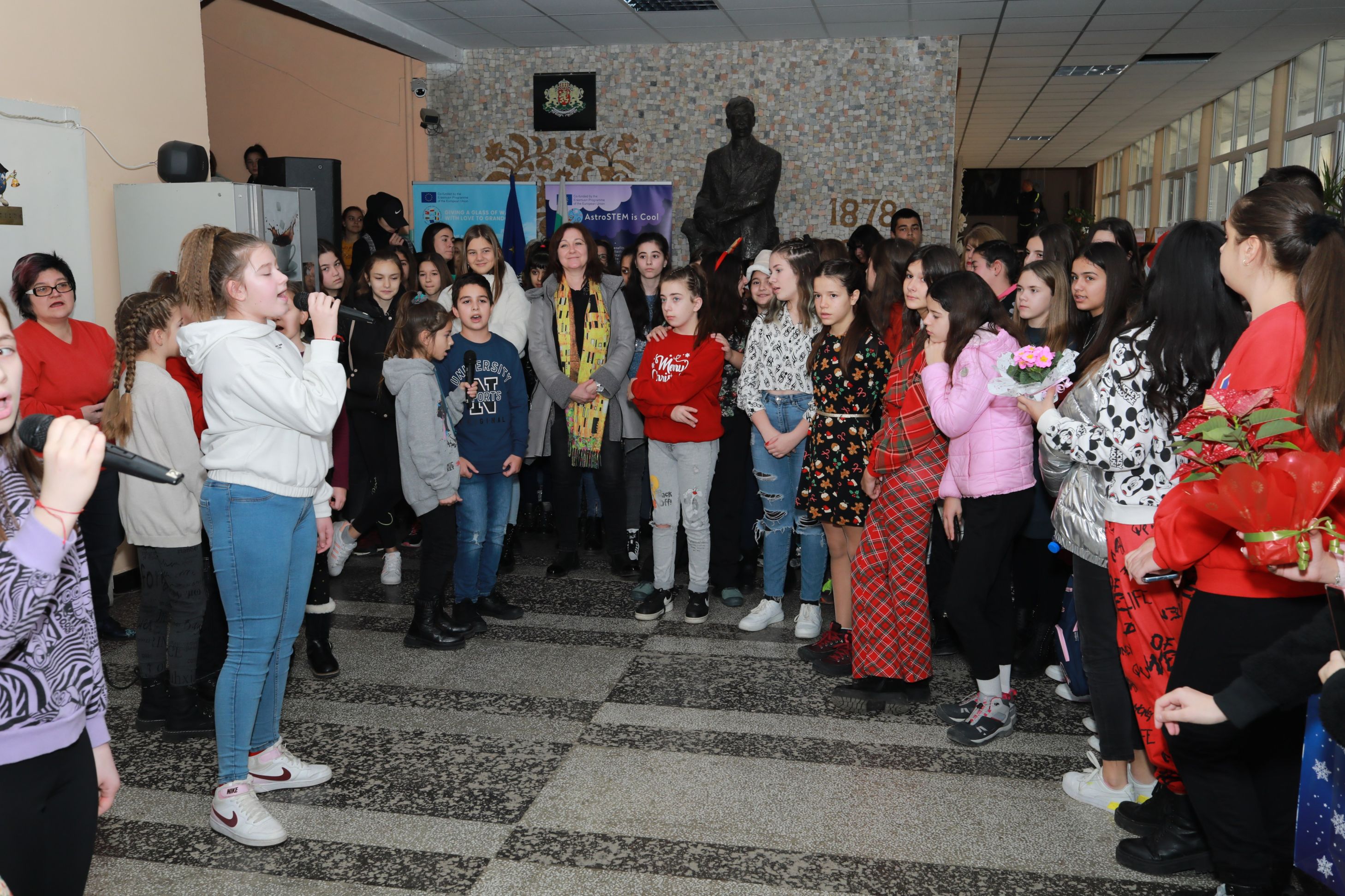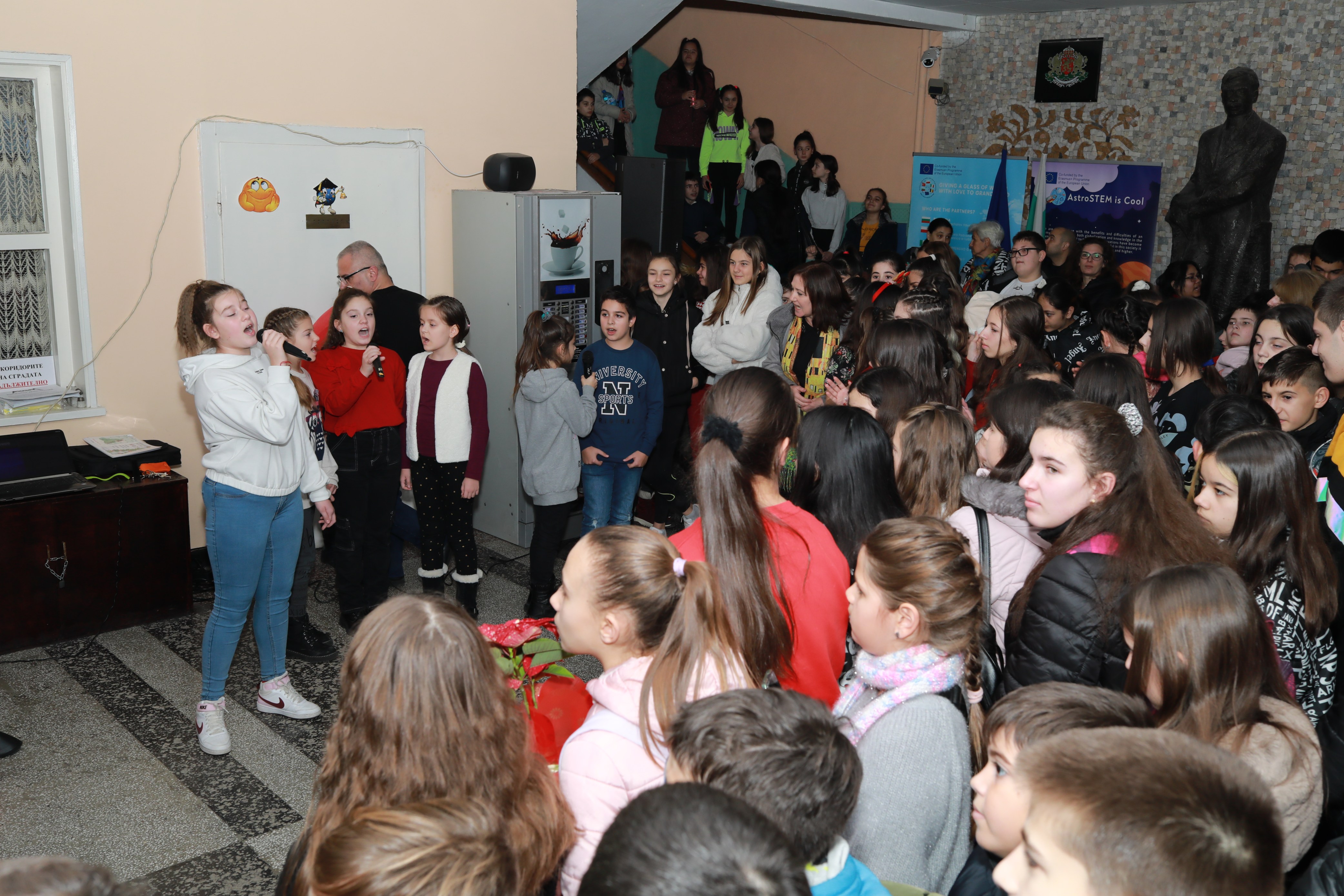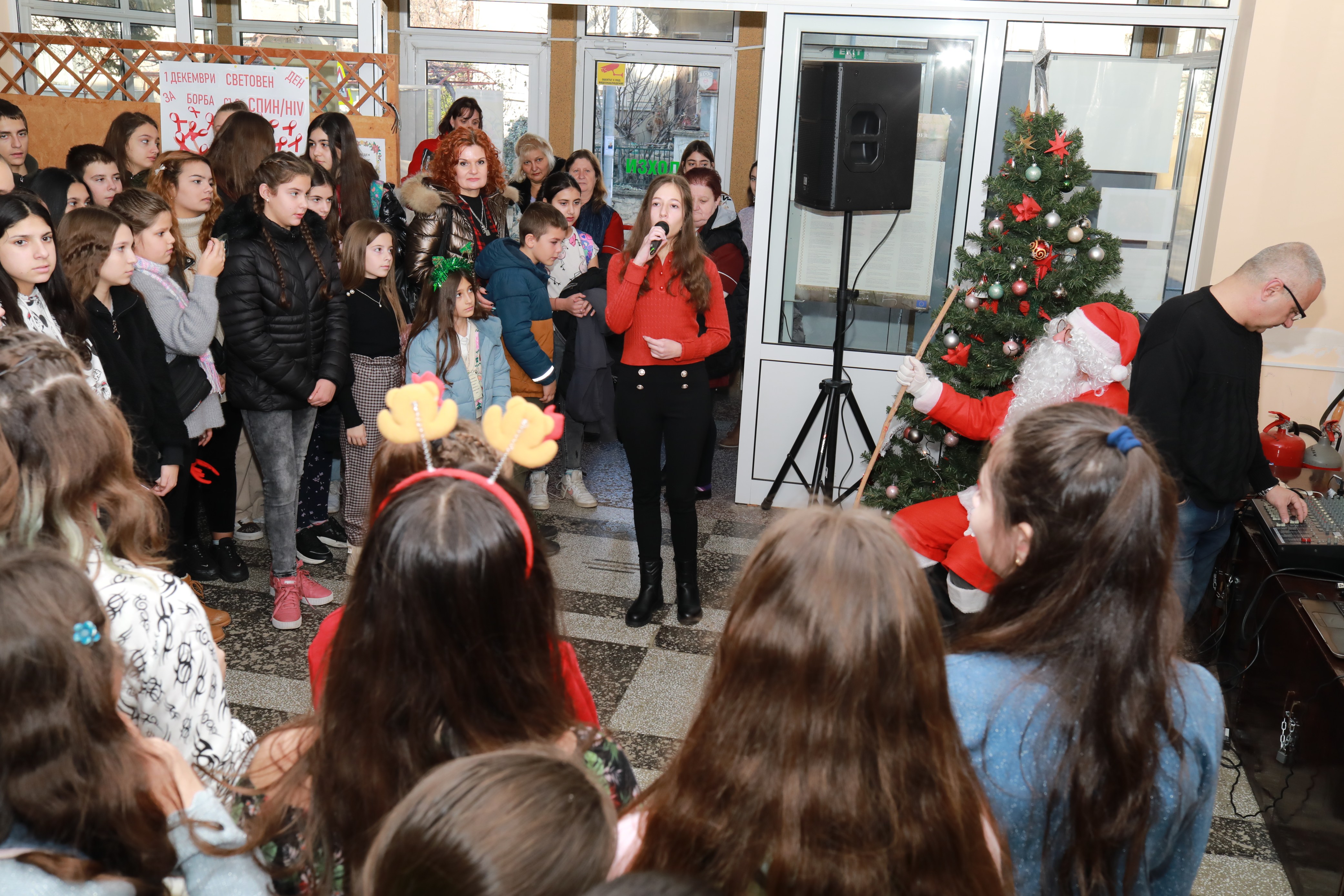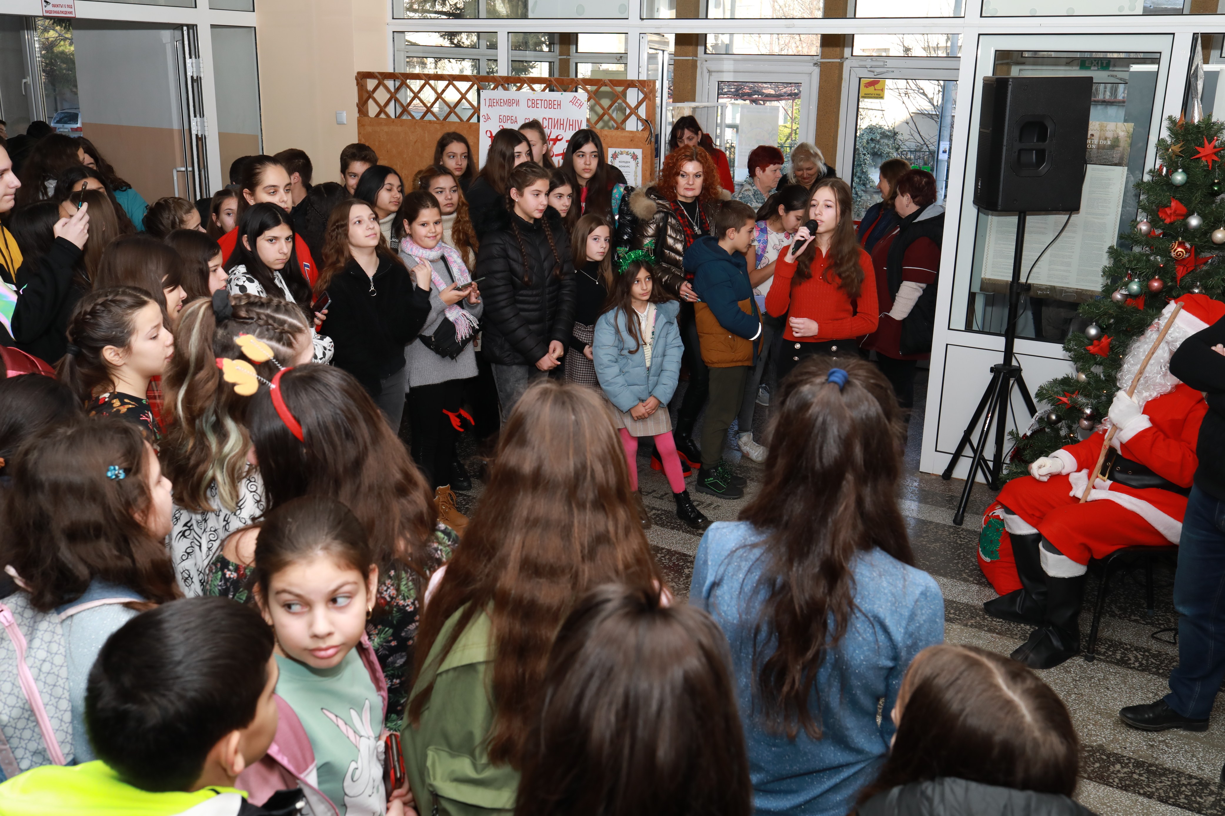 За доброто настроение на всички учители и ученици много талантливи малки певци пяха коледни песни и това бяха: Ивелина Манева от 6. б клас, Памела Реджеб от 5. в, Анелия Желева от 7. б клас, Гергана Панева от 5. а клас, Анна Петрова от 7. б клас, Ралица Колева от 5. в клас, Рая Попова от 5. в клас, Мария Маркова от 5. в клас, както и вокална група „Бим бам“ на г-жа Мария Петрова.