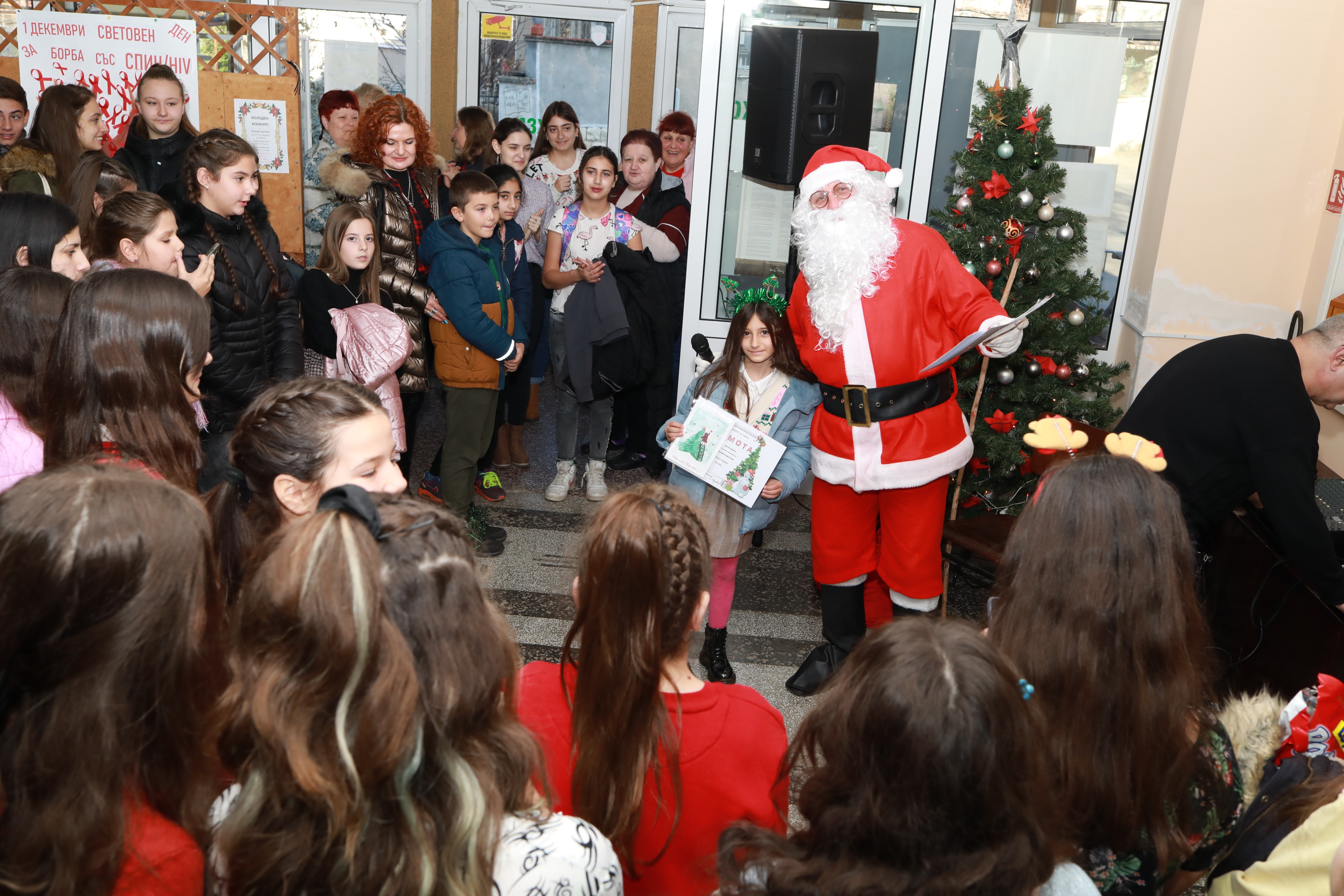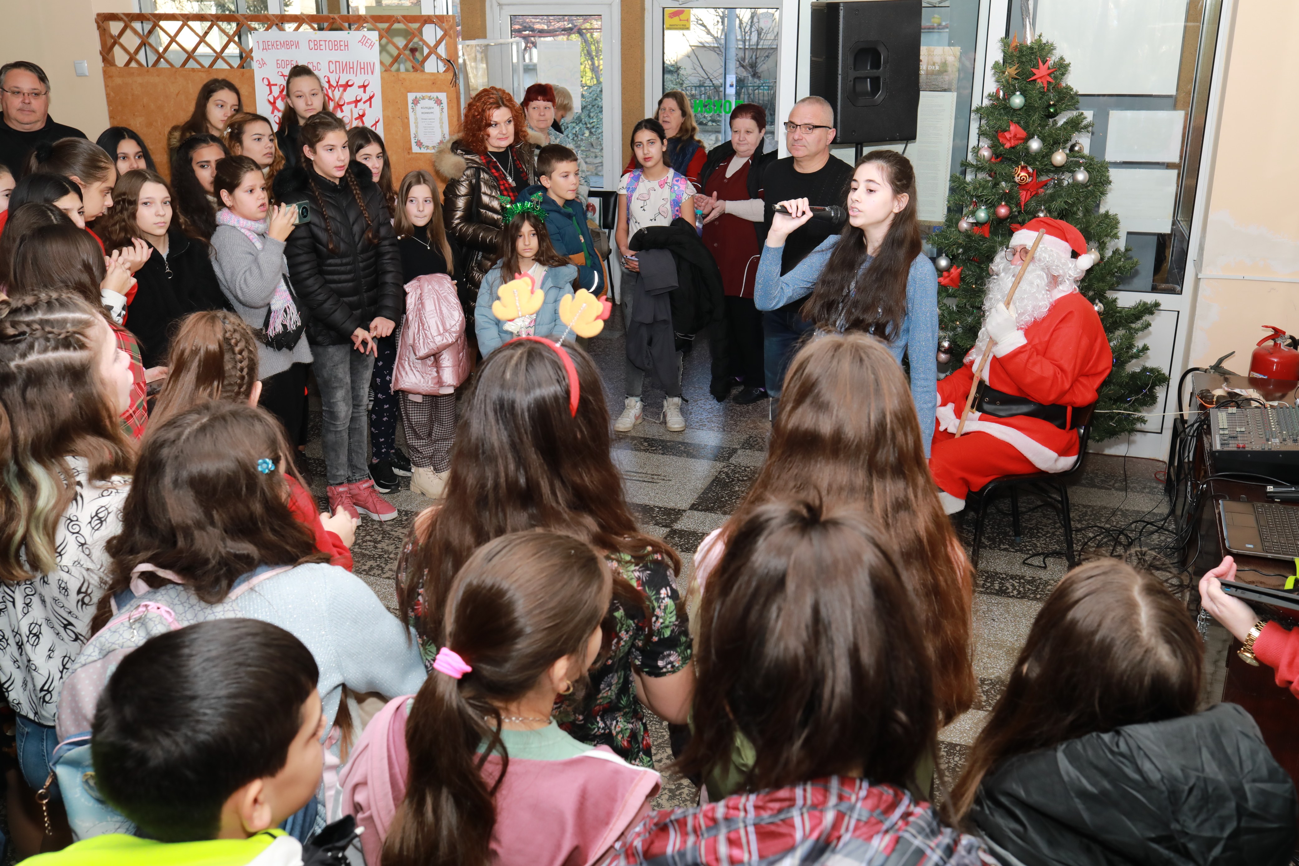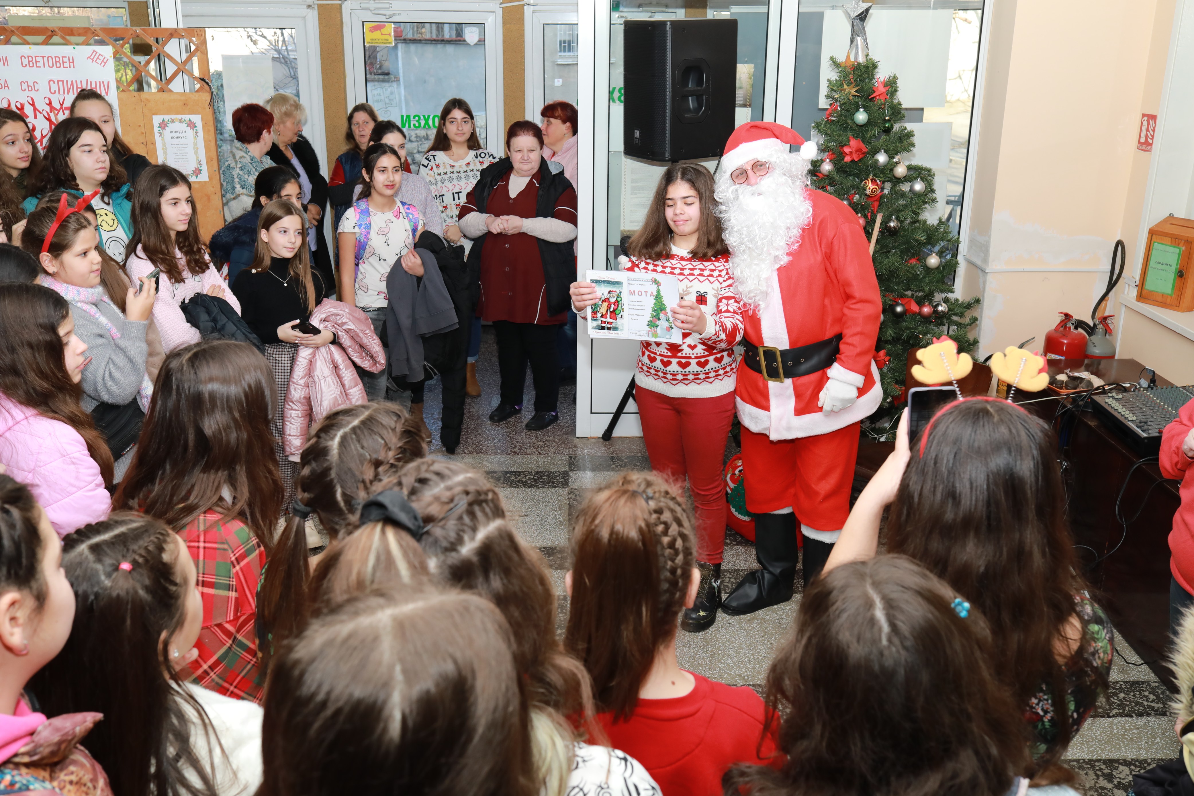 Гост на празника беше, разбира се, Дядо Коледа, който раздаде награди на много послушни и талантливи деца, които участваха в конкурса за коледна картичка.
