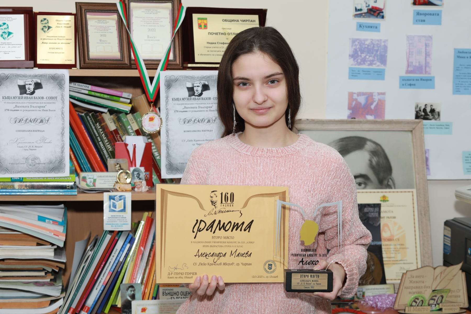 Във втора възрастова група 7-12 клас наградата за второ място ми бе присъдена за есето „Щастието на пътешественика“.