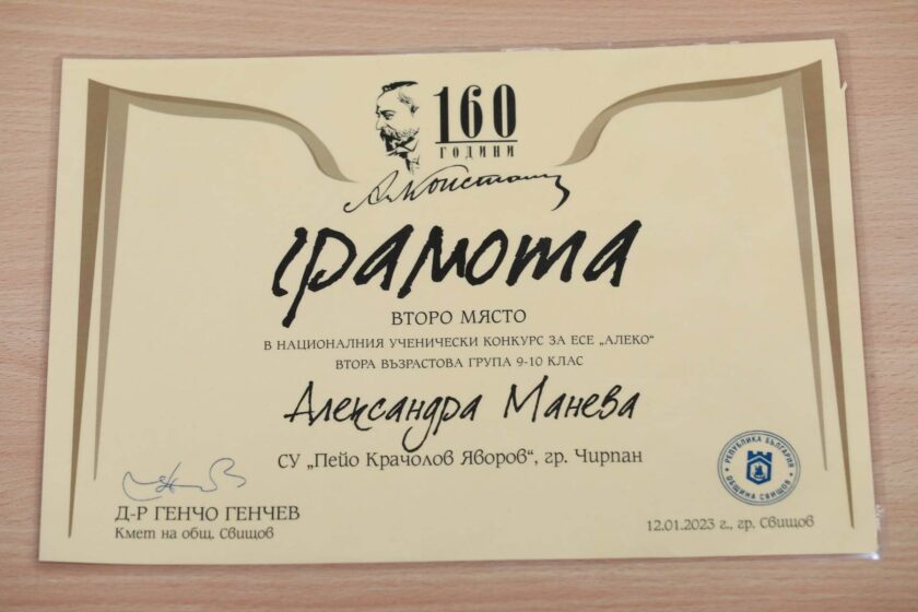 По повод 160 години от рождението на Щастливеца Община Свищов обяви Национален ученически конкурс за есе за ученици от 7 до 12 клас.