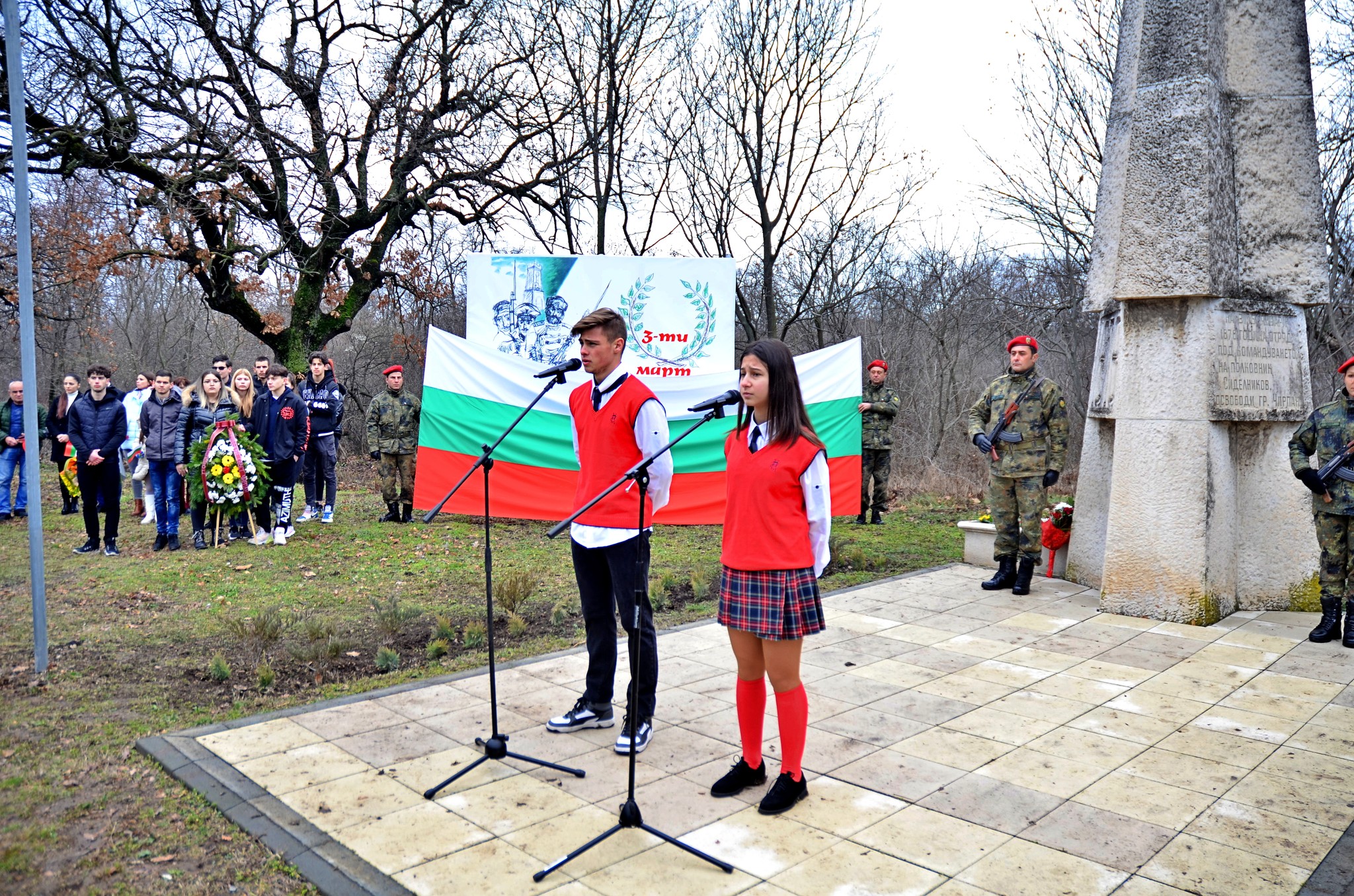 3 март е ден, в който честваме Освобождението на България от турско робство с изпълнени от гордост сърца, защото саможертвено много от нашите предци са дали живота си, за да я има днешна България. В празничното шествие, в ръцете с националното знаме, се включиха ученици, част от Театралното студио към СУ “Пейо Крачолов Яворов”: Димитър Търгов, Теолина Тунанова, Теодор Стефанов, Иванина Иванова, Никол Атанасова и Михаил Петков, а пред паметника на освободителите Кристияна Иванова рецитира стихотворението “На Шипка е тихо”, а Мелиса Ерхан и Спас Ангелов – “Ти, родино”. Учениците поднесоха и венци от името на Кмета на Община Чирпан г-н Ивайло Крачолов и от Общинския съвет – град Чирпан.