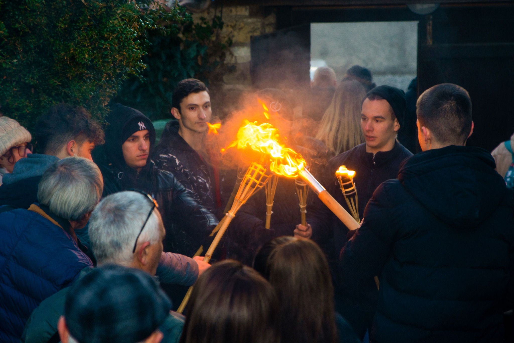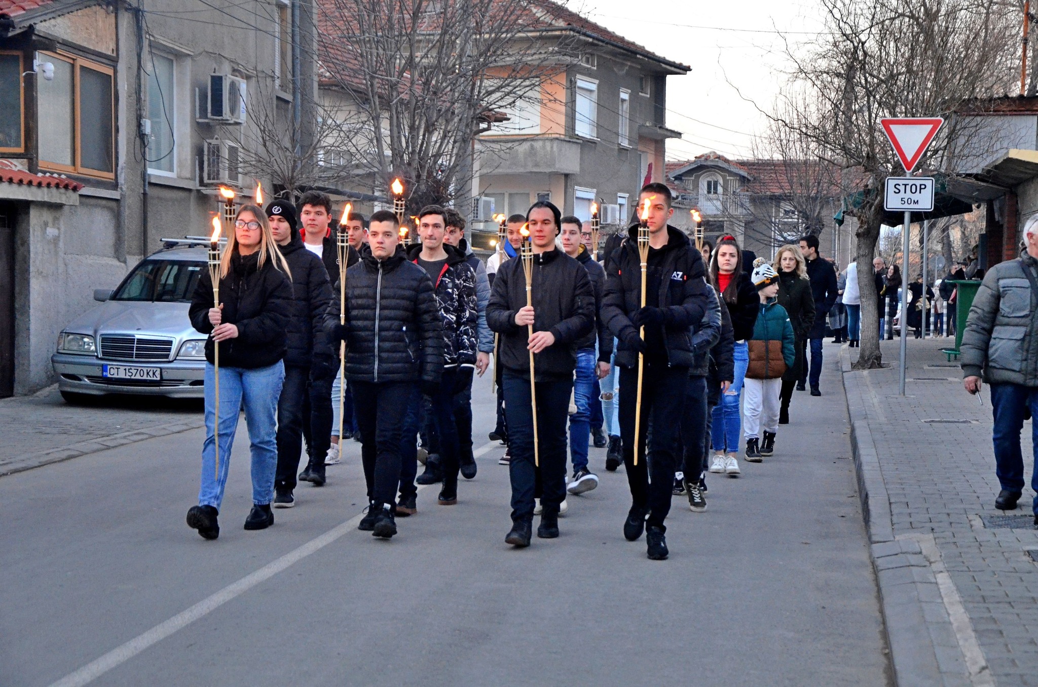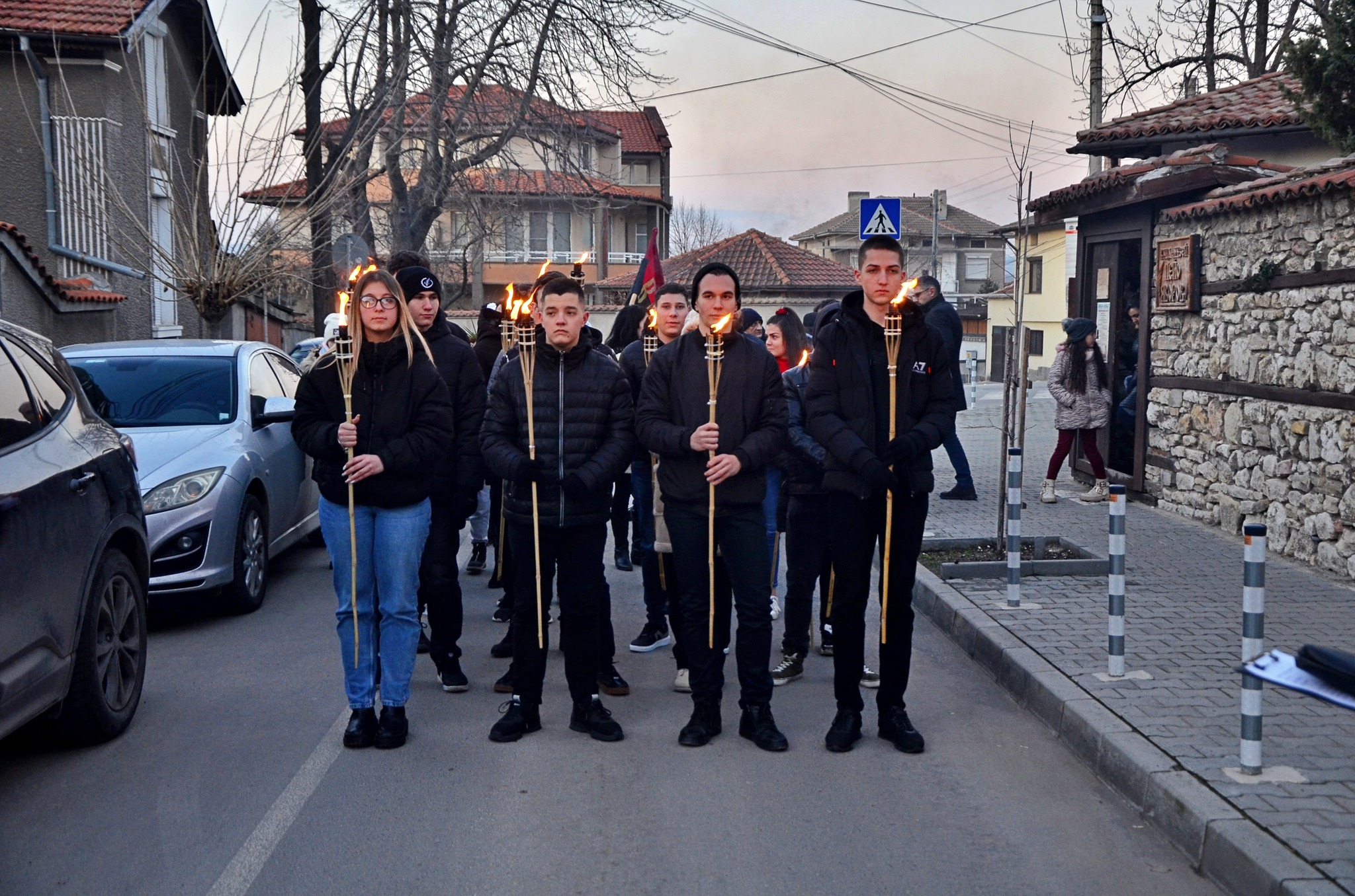 След това огънят на Яворовата поезия беше отнесен с факелно шествие до паметника на Яворов в градския парк от изявени ученици на гимназията ни. Вечерта продължи в залата на Военния клуб и след думи на поетесата Маргарита Петкова за Яворов и неговото творчество, празникът продължи с представлението „Тренът“, което се игра за последен път от участниците в Театралното студио, „Тракийска броеница“, както и танцовия състав „Светулки“.