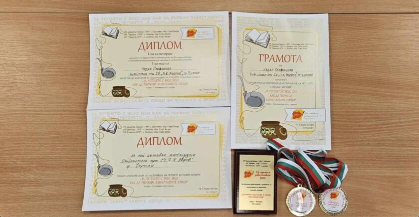 - Почетен плакет за отлично представяне в кампания за насърчаване на четенето и онлайн конкурс