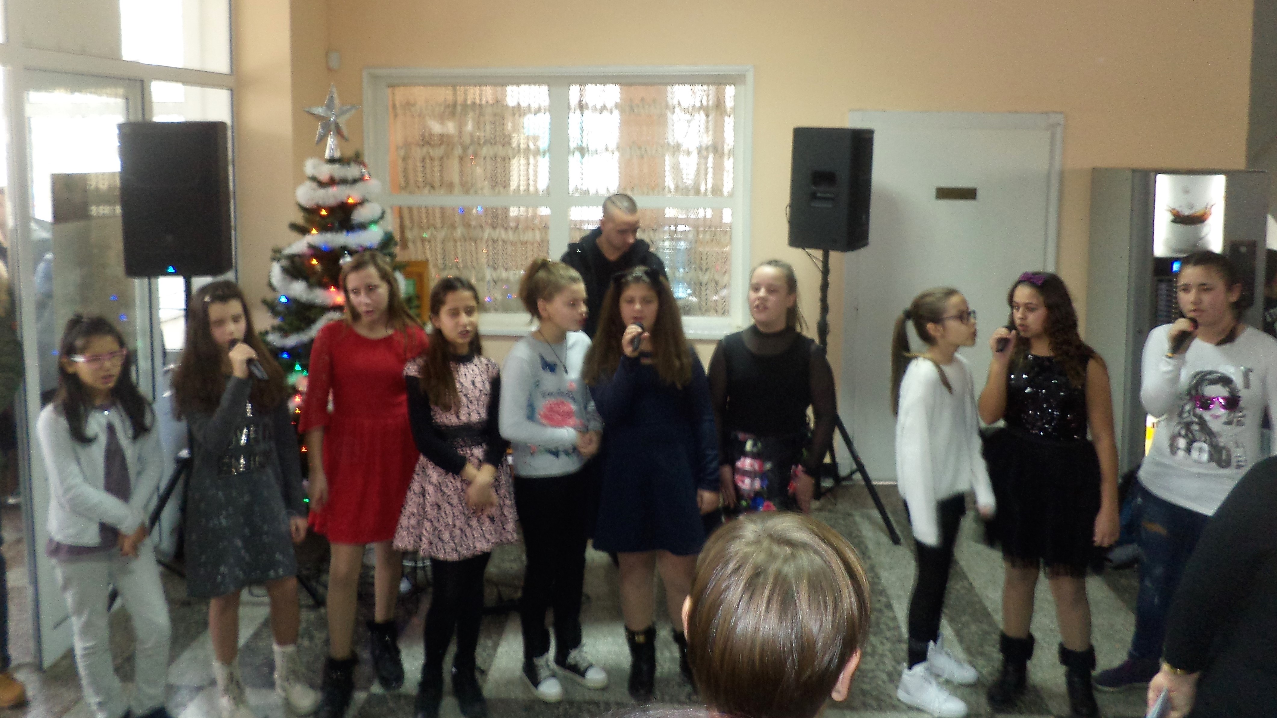на Вокално студио, с ръководител г-жа Кина Йорданова, отбелязаха днес, 21 декември, началото на Светлите християнски празници учениците от Средно училище ”П. К. Яворов”. Импровизираната сцена беше във фоайето на гимназията, където имаше оформен коледен кът с елхата и базар от коледни украшения на талантливите „Сръчковци” на г-жа Мими Георгиева.