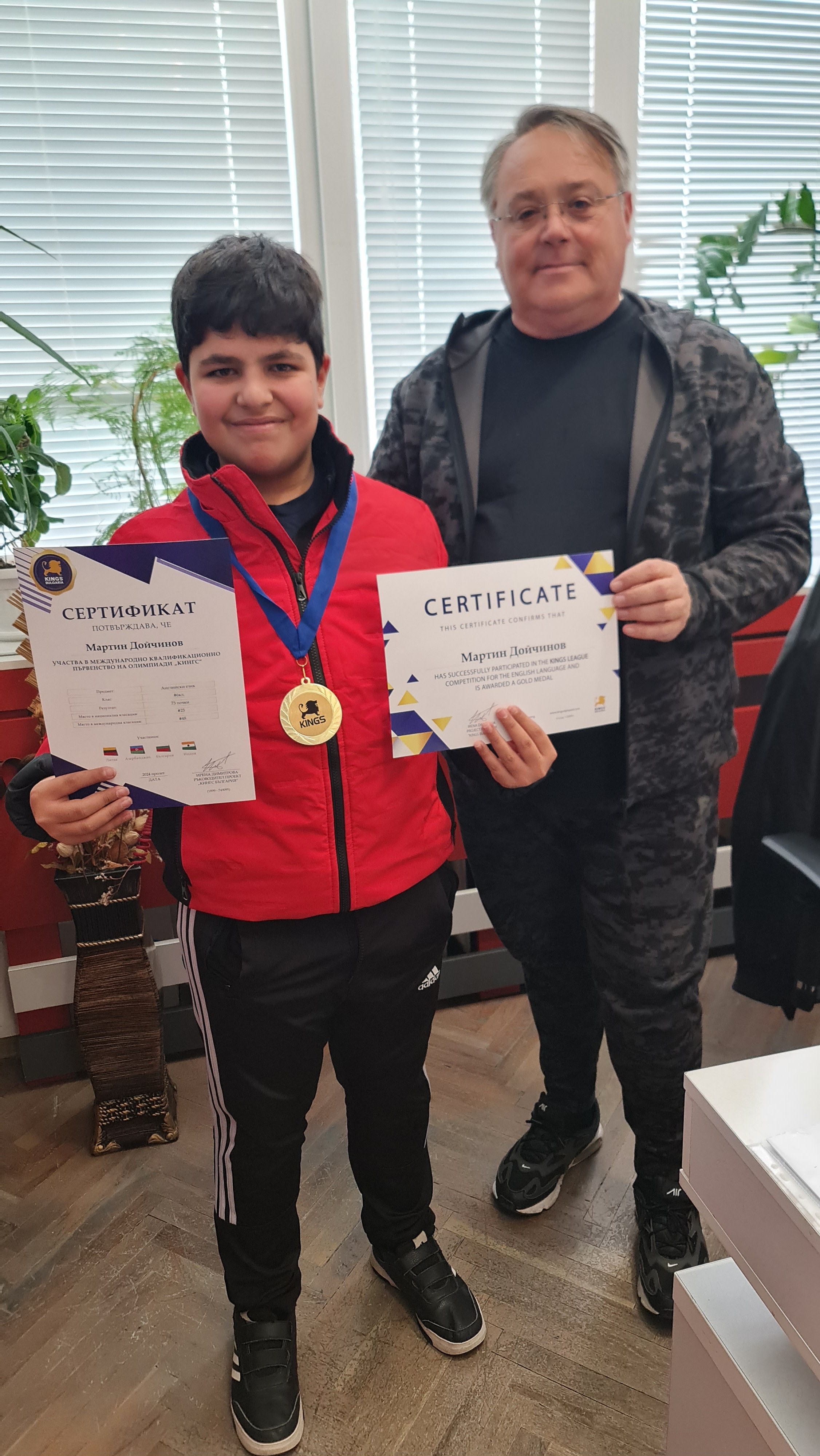 1. Мартин Дойчинов – 7 клас, Златен медал, Английски език;