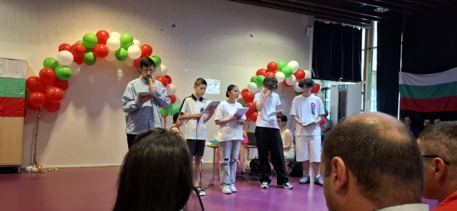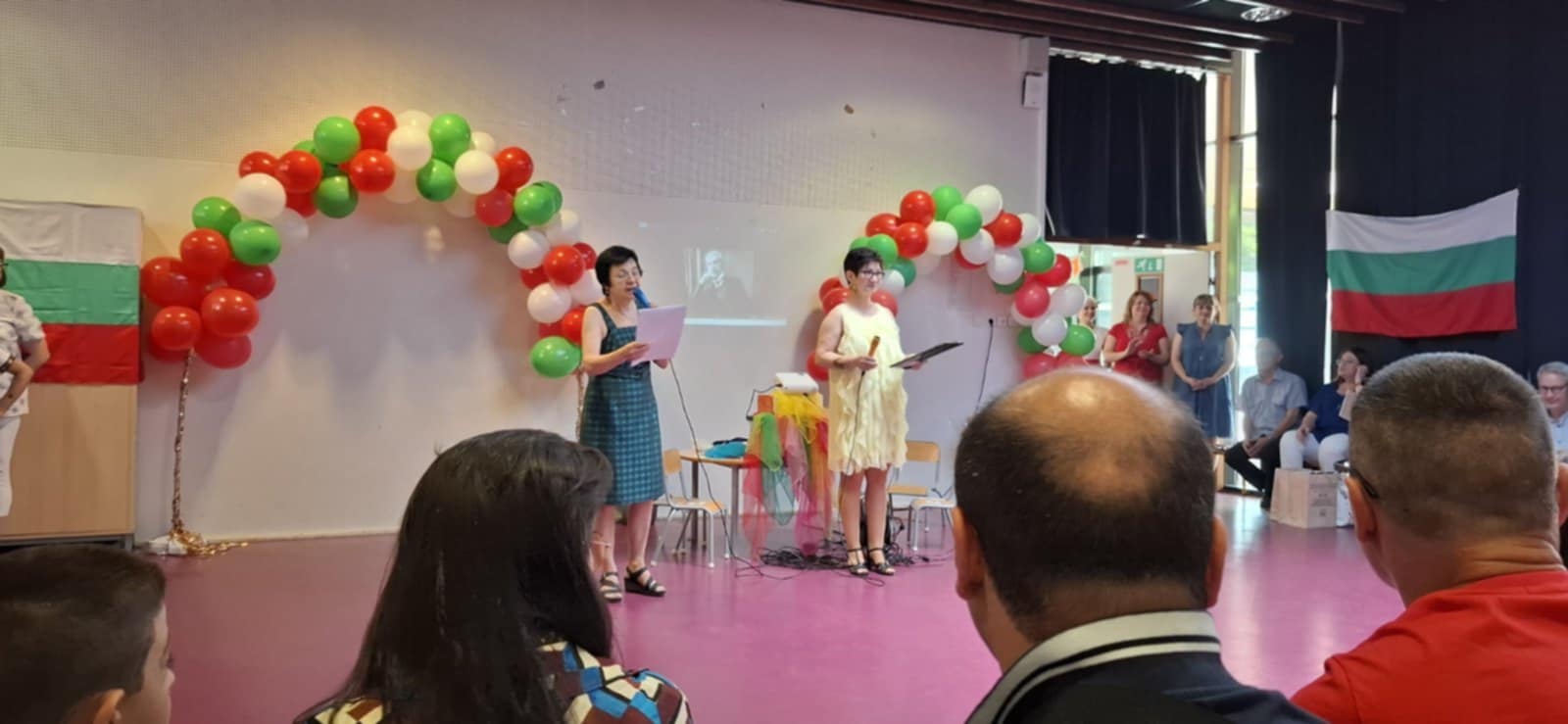 Посрещането бе радушно и топло. Тържеството започна с традиционни български хора. Последва кратък спектакъл, с който учениците от БНУ са завоювали трето място в израелски конкурс. Най-малките възпитаници пяха и танцуваха под съпровода на български мелодии. Изгледахме триминутен филм, свързан със 175-годишнина от рождението на Патриарха. Учениците показаха завидни познания върху биографията на Вазов. Учениците от 3-ти клас изпяха песен по негови стихове. Последва групова рецитация на стихотворението “Отечество любезно, как хубаво си ти”. Насладихме се и на училищния химн “Вазовчета”, с който училището печели Специалната награда в Националния конкурс “Вазовата България” на Къща музей “Иван Вазов”, град Сопот. Само за 24 часа клипът събира над 6 хиляди гледания в Ютуб. Г-жа Райна Манджукова, директор на ИАБЧ, връчи специална награда на награда от “Вълшебното перо” от името на институцията, която ръководи и благодари на родителите, които полагат усилия, за да учат децата им в българските училища в чужбина. Г-жа Радка Балабанова-Рулева, посланик на Република България в Париж, връчи дипломите на дванадесетокласниците.