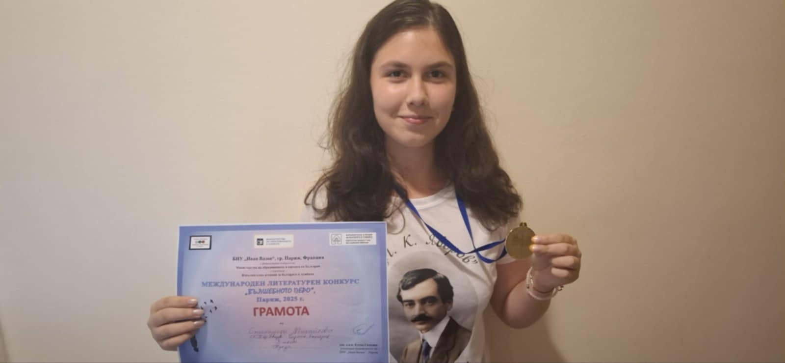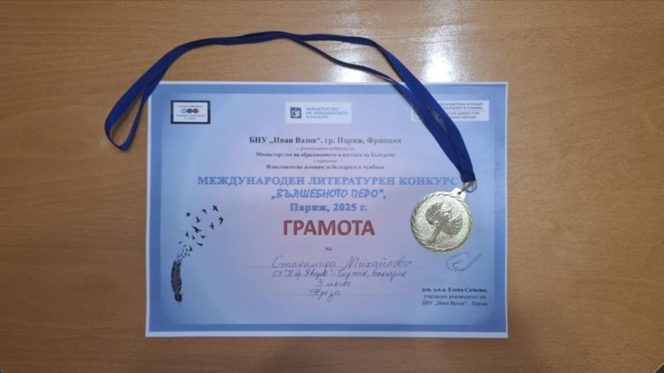 Накрая журито награди отличените участници в конкурса. Лично от председателя-г-жа Здравка Евтимова, аз получих диплом и медал. Отличените творби ще бъдат публикувани във вестник “Вазовчета”.