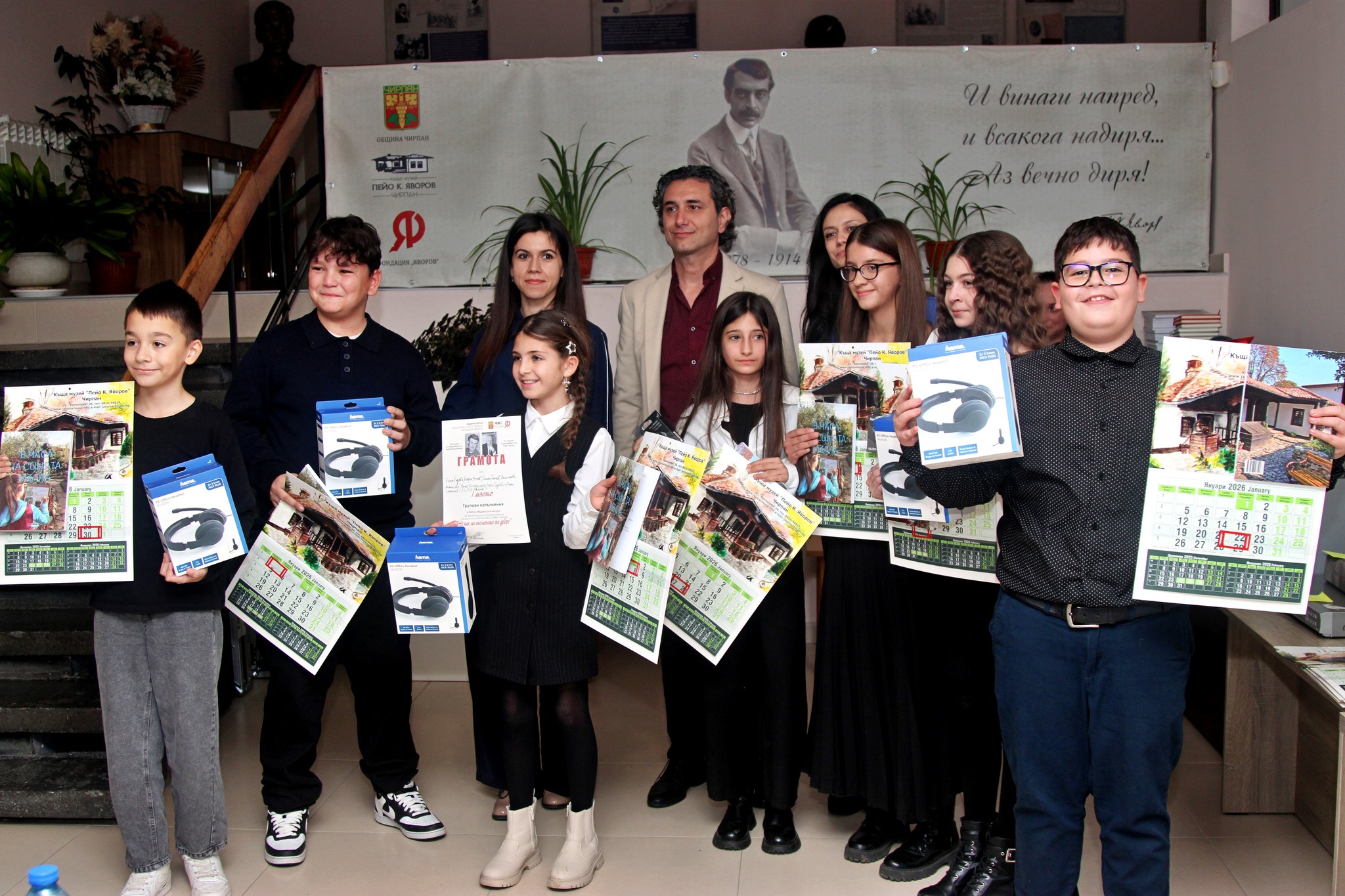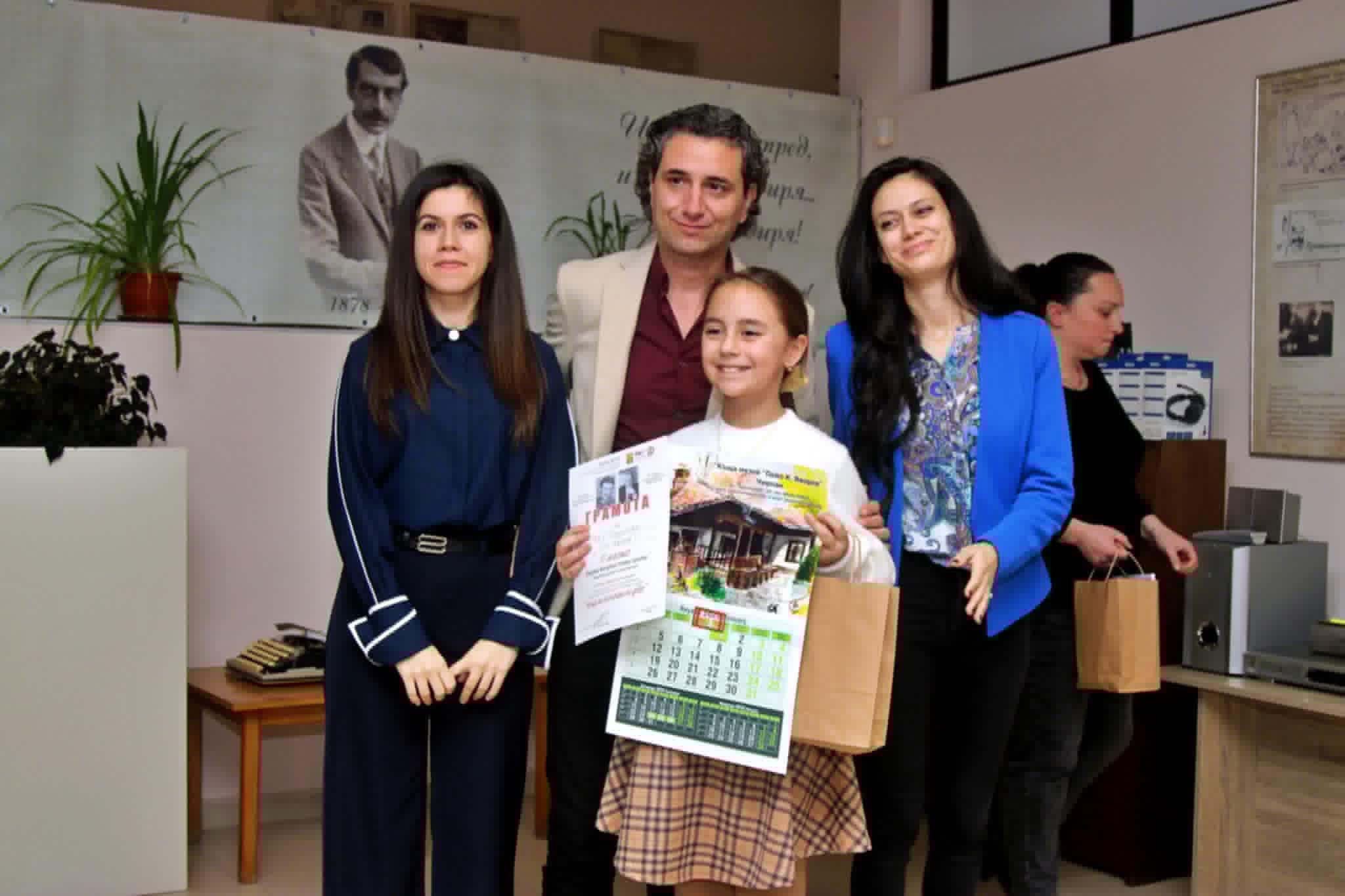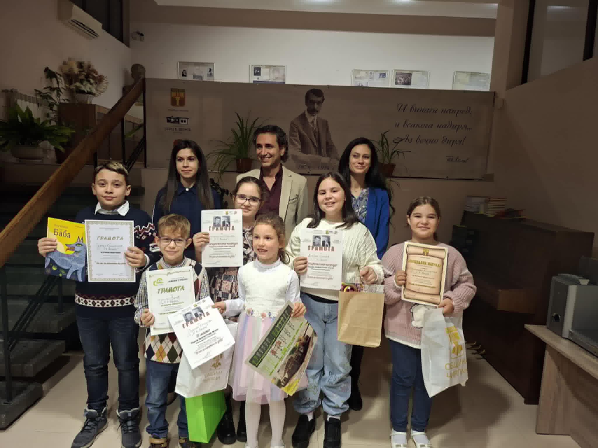 НАГРАДА ОТ КНИЖАРНИЦА „ДЖЕМИ СТРАТУС“: Василен Енев – 2. в клас, Николас Делев – 3. б клас (ръководител – Иванка Видева), Гергана Пенева – 8. б клас (ръководител – Недка Петрова)