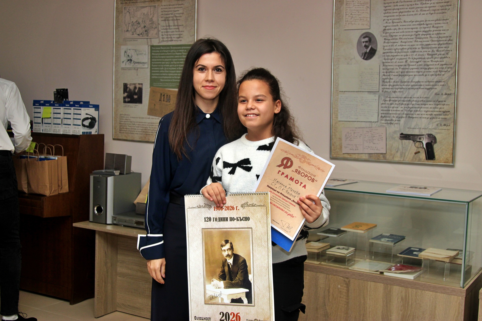 НАГРАДА НА НЧ „ПЕЙО КРАЧОЛОВ ЯВОРОВ 1867“: Мария Ангелова – 8. б клас (ръководител – Недка Петрова)