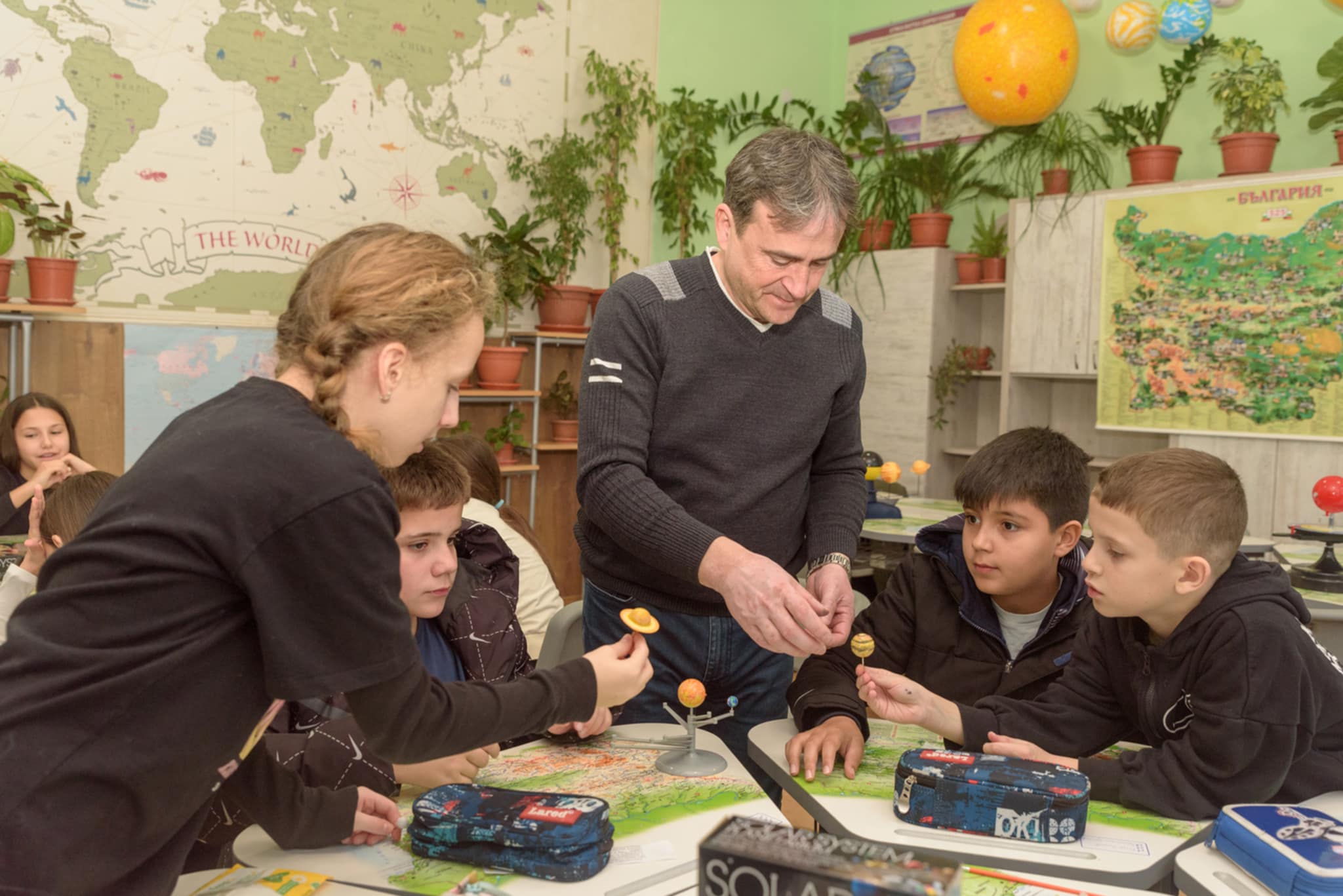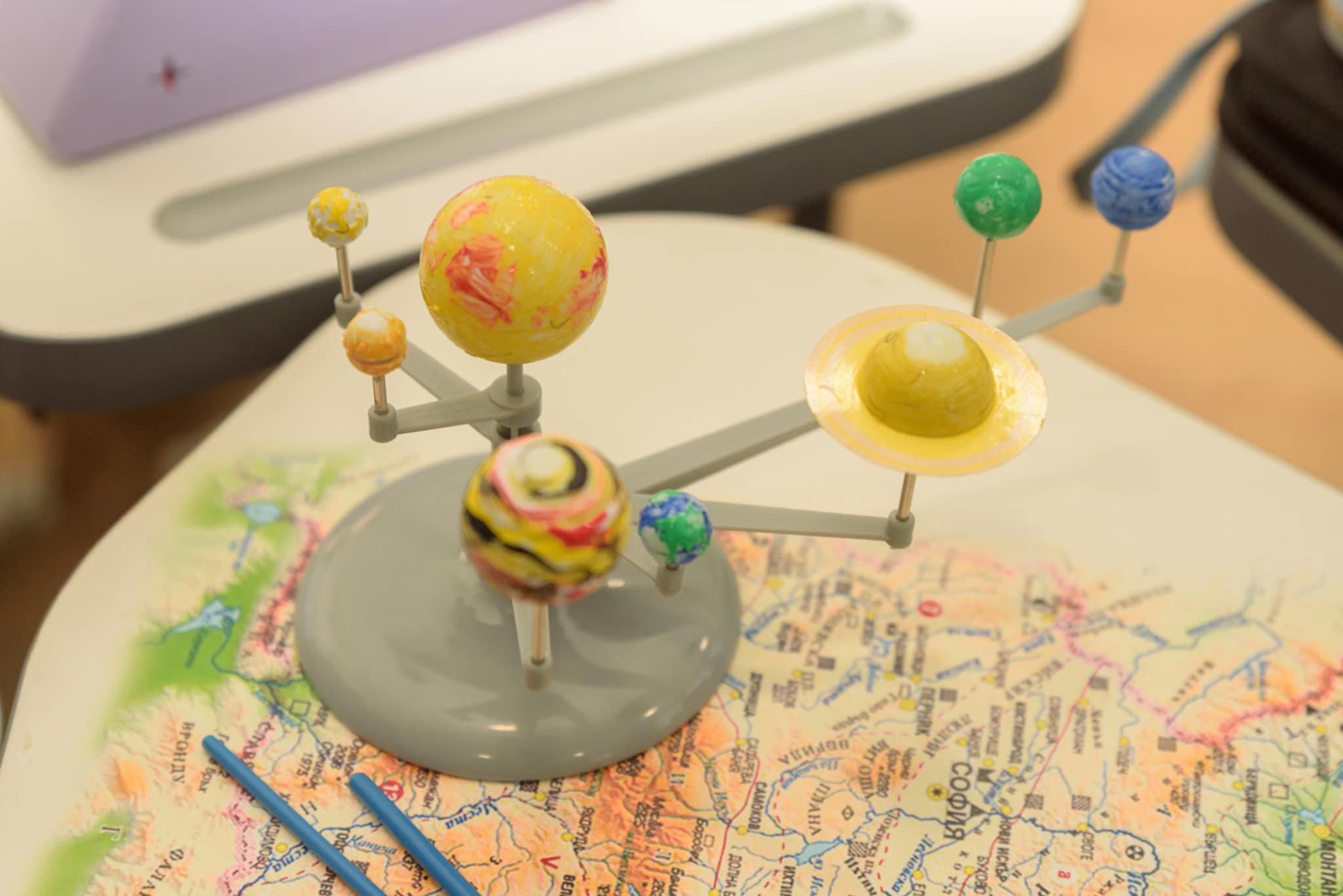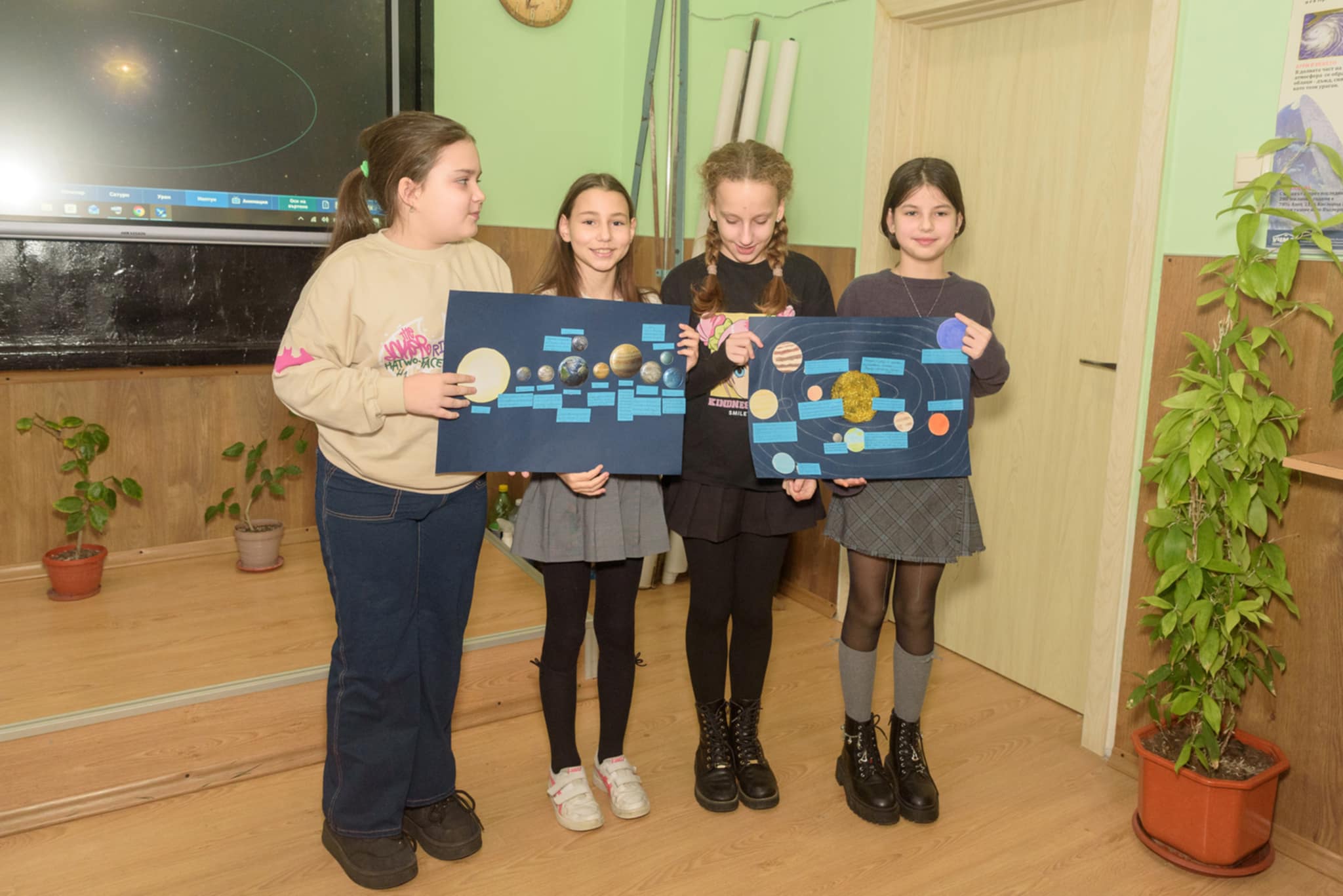 Четвъртокласниците показаха завидни знания по темата, отговаряха на въпроси, разказаха интересни факти за планетите и Слънцето, представиха проекти и стигнаха до изводи, свързани с движението на Земята. Тръгнахме си много развълнувани и с уверението, че тези занимателни уроци в шарения иновативен кабинет по география и икономика ще продължат и в 5. клас!