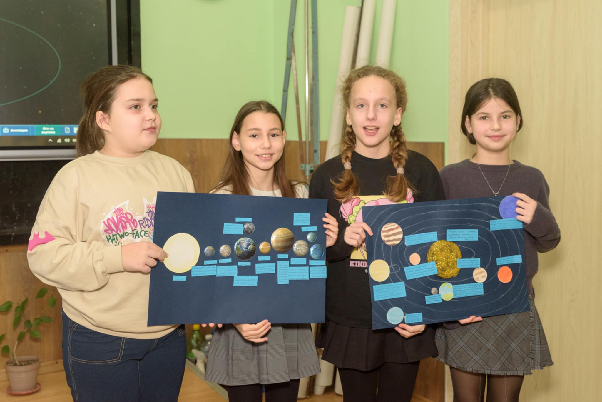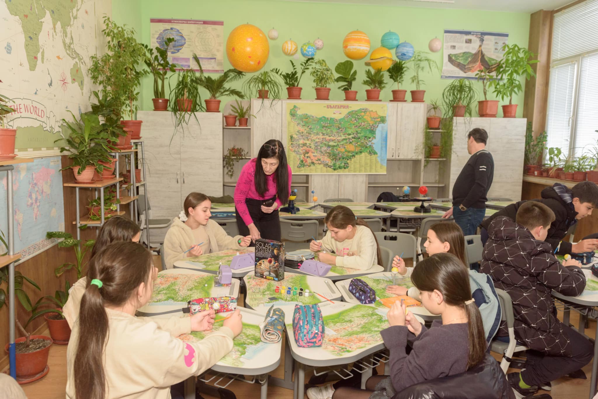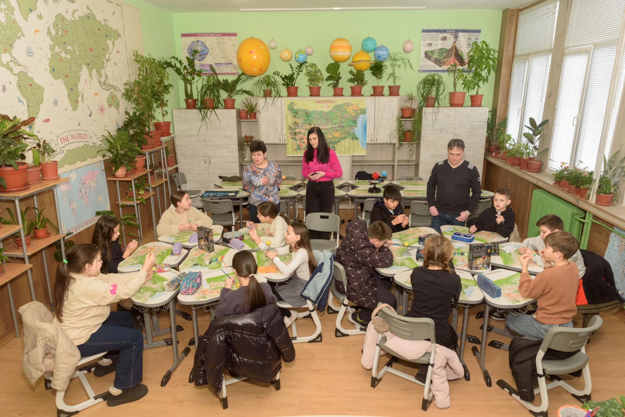 Четвъртокласниците показаха завидни знания по темата, отговаряха на въпроси, разказаха интересни факти за планетите и Слънцето, представиха проекти и стигнаха до изводи, свързани с движението на Земята. Тръгнахме си много развълнувани и с уверението, че тези занимателни уроци в шарения иновативен кабинет по география и икономика ще продължат и в 5. клас!