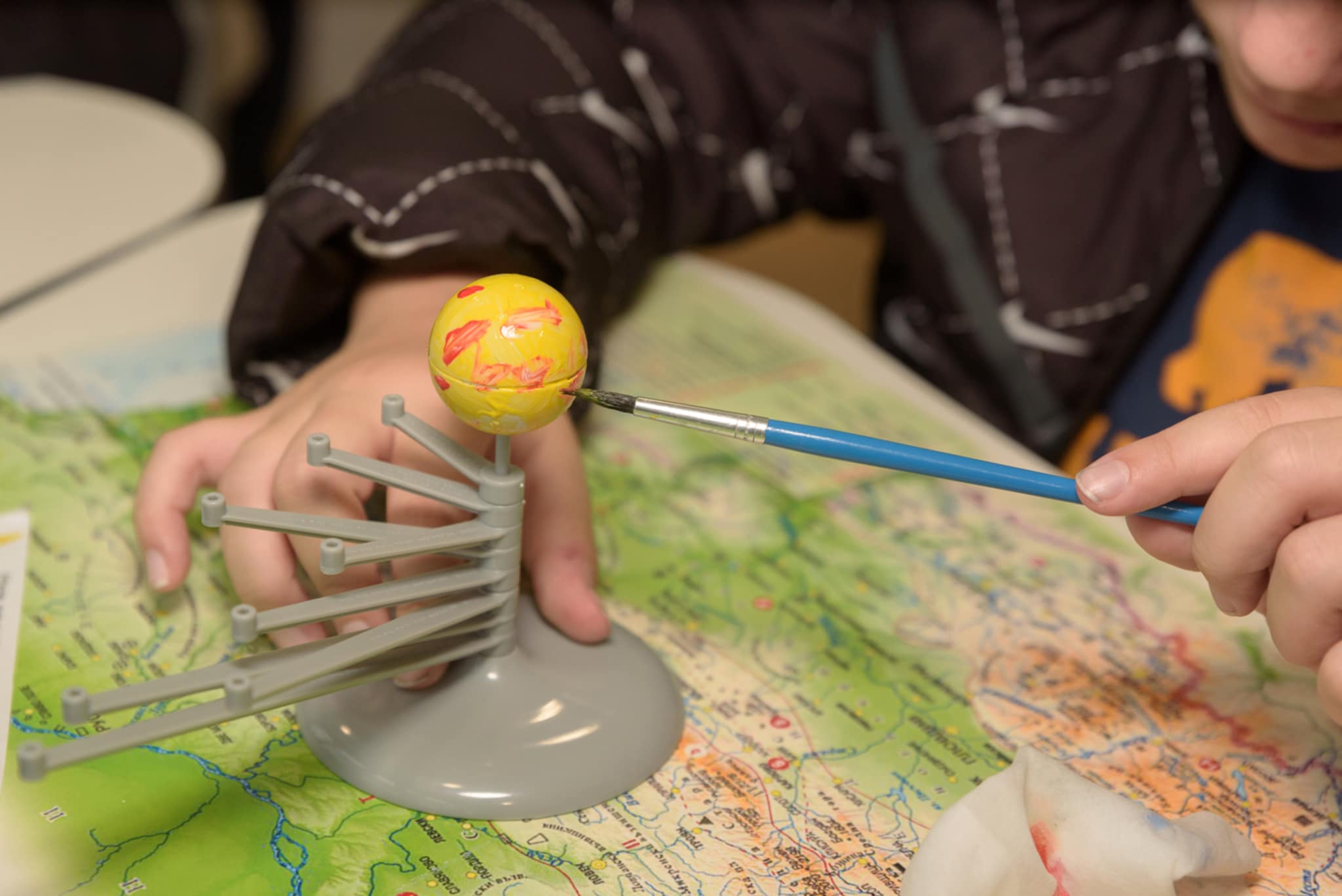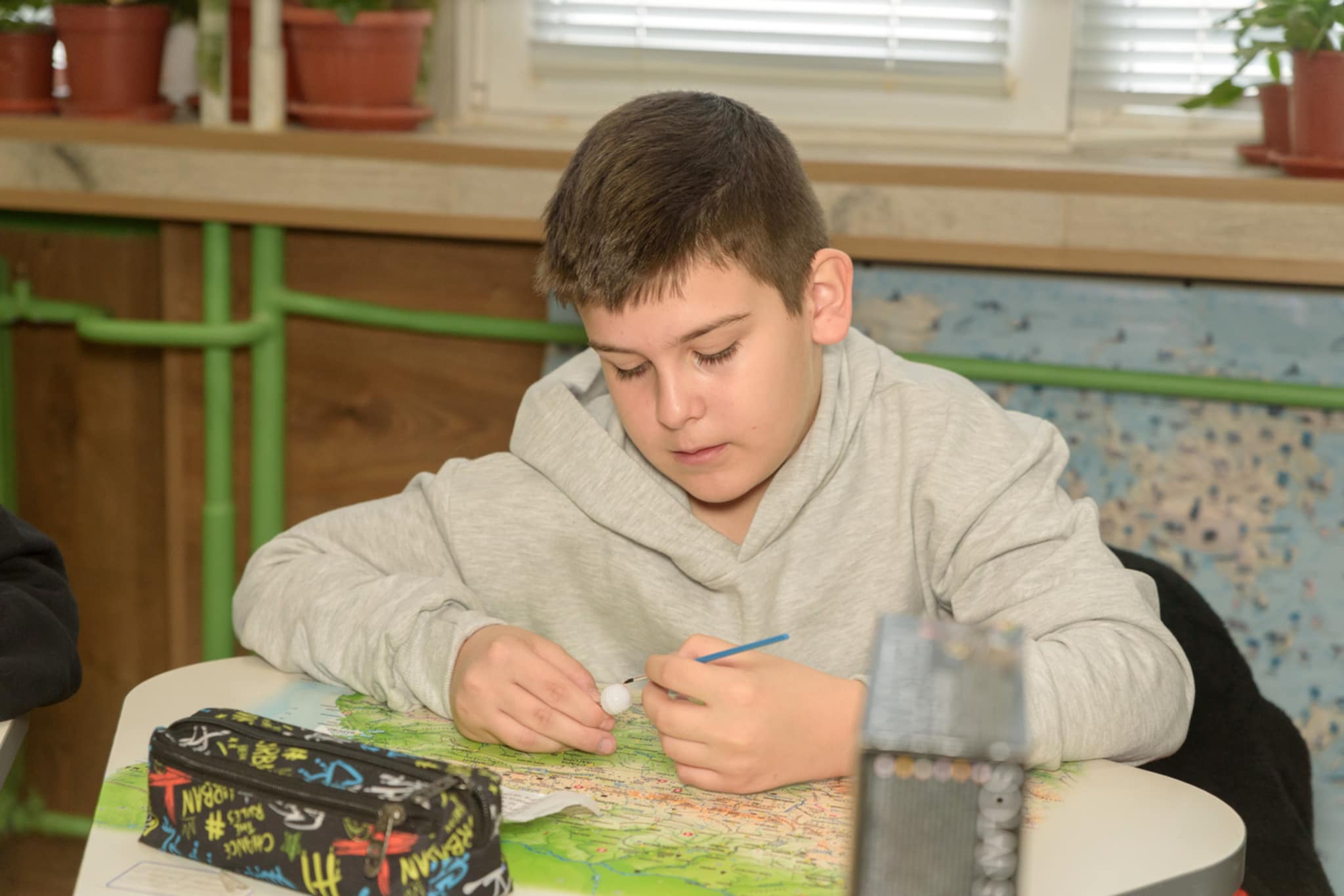 На 23.01.2026 г. учениците от 4.в клас бяха на гости в СТЕМ кабинета по география и икономика, в който учат учениците от 5. до 7. клас. Бяхме посрещнати от неговия домакин г-жа Екатерина Петрова – зам.-директор на СУ „Пейо Крачолов Яворов“, но и преподавател по същата дисциплина. Четвъртокласниците не бяха просто гости, но и участници в урок по човекът и природата, в който научиха интересни факти за Слънчевата система от увлекателния разказ на г- жа Петрова. Изключително интересна бе срещата ни със сеньор Галилей, който ни разказа за живота си и великите си открития. Изненадите не спряха дотук. Под ръководството на госпожа Петрова малките изследователи, разделени на два отбора, се справиха прекрасно и с изработването на макети на Слънчевата система.