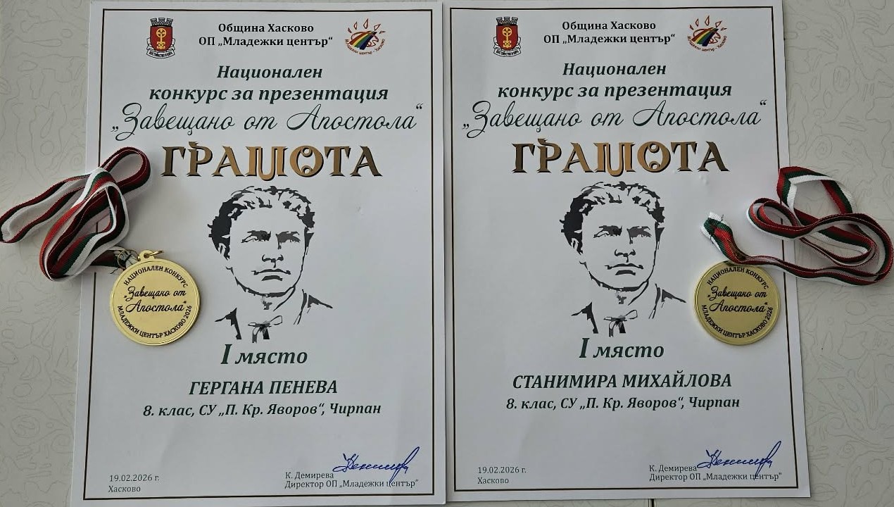 Ръководители на отличените ученици са: Даниел Иванов (учител по информатика и ИТ) и Недка Петрова (старши учител по БЕЛ и история).
