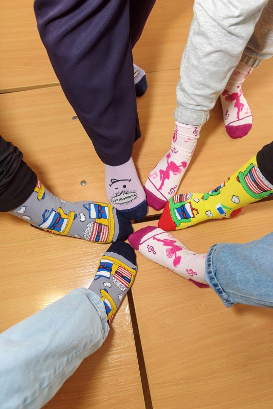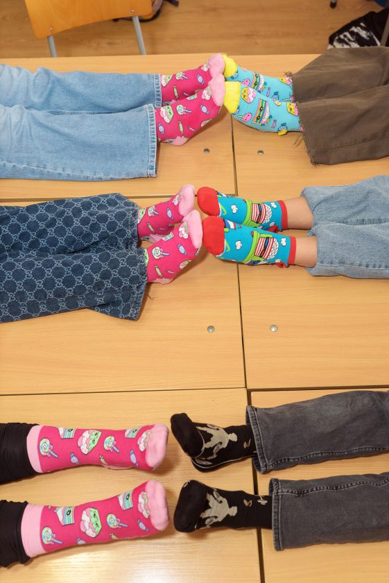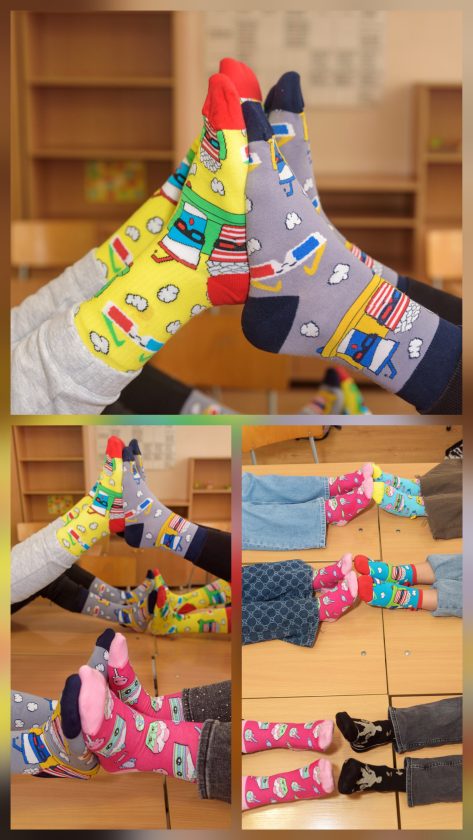 Посланието,към което се присъединиха и учениците от 5 и 7 кл. ЦОУД, е част от кампанията на Фондация “Живот със Синдром на Даун“ . А то призовава хората да обуят различни или ярки чорапи и да покажат, че светът е пъстър и че приемаме различията.