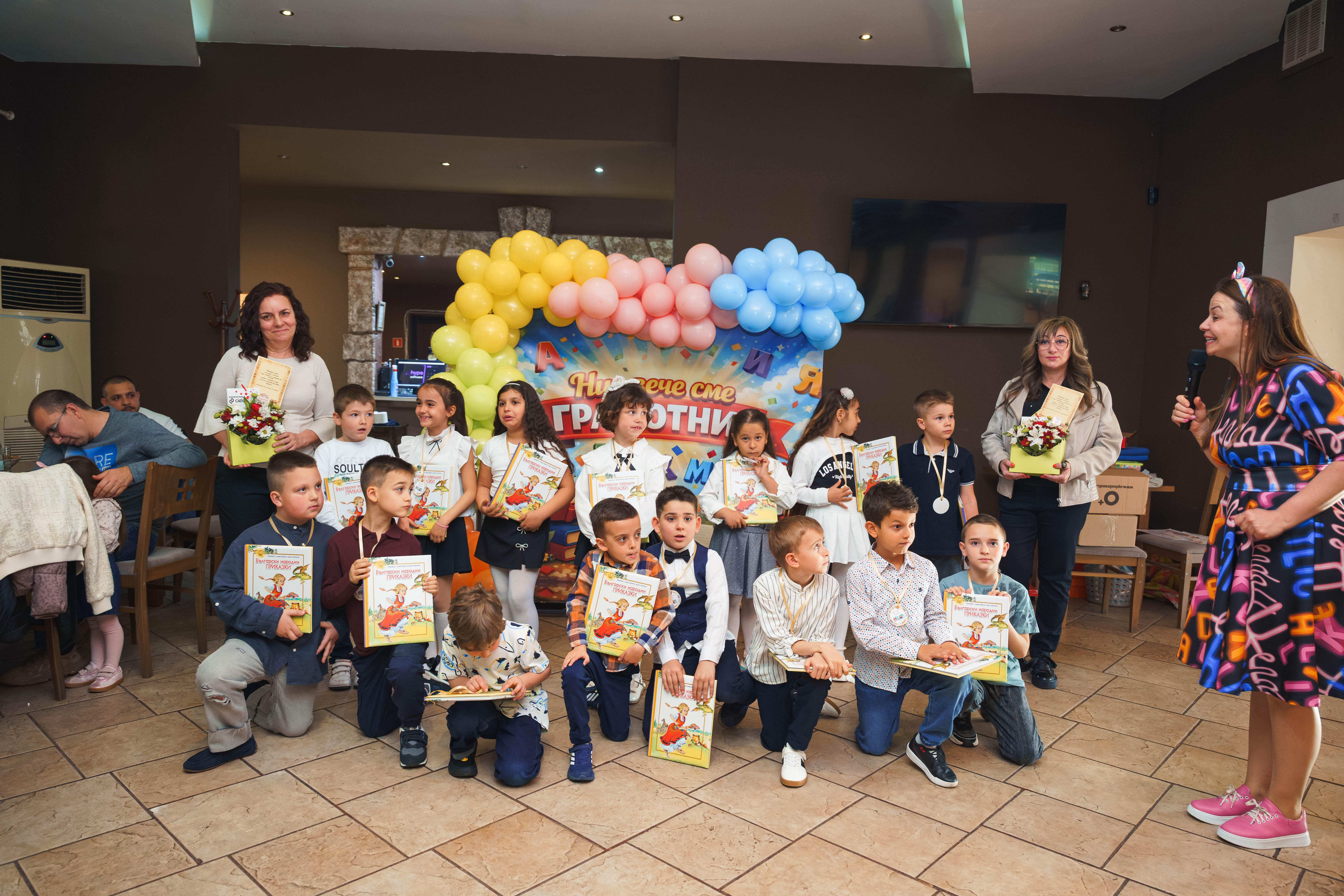 Малките грамотни откриватели направиха най-важната стъпка в света на знанието- вече могат сами да четат и пишат. Тържеството бе забавно и весело. Звучаха стихчета за буквите, песни, радостни и забавни игри. Децата посрещаха любими герои от детски филми.