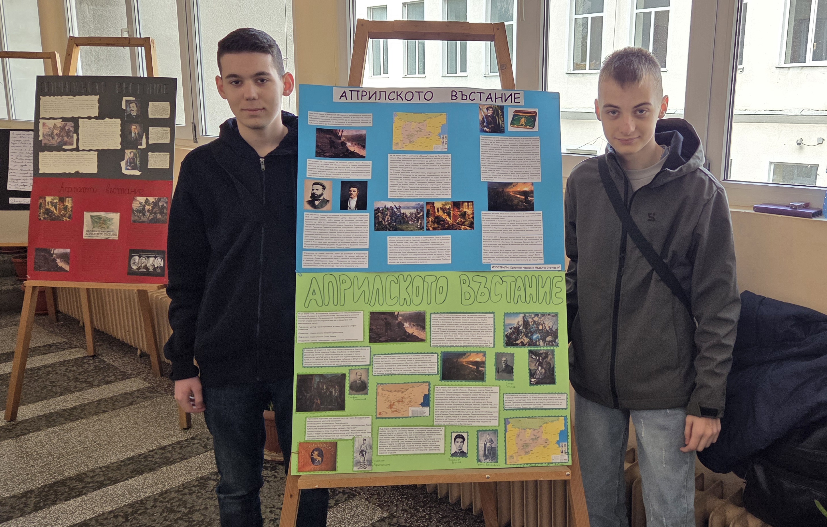 На 20 април се проведе изложба на ученически проекти по повод 150 години от организирането на Априлското въстание. В нея участваха ученици от 8,9 и 10 клас. Освен основните събития и личности учениците представиха и участието на чирпански възрожденци във въстанието.
