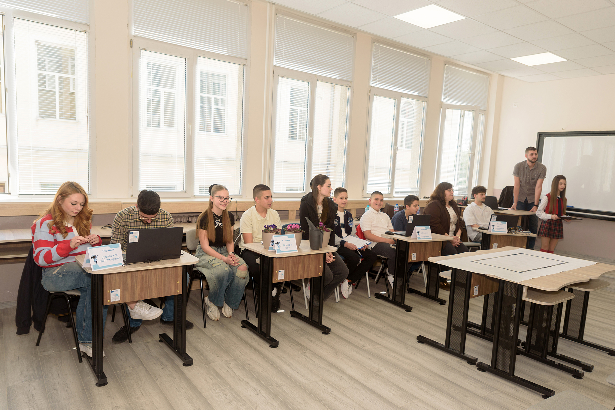 В рамките на проект № BG-RRP-1.015-1216 бяха изградени и оборудвани 4 модерни STEM кабинета: