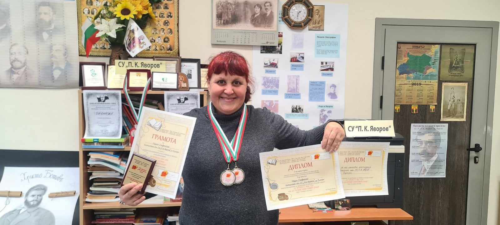 Автор: Недка ПетроваСнимки: Йоанна Гурванова По случай 87 години от рождението на Дамян Дамянов и във връзка с патронния празник на училището Профилирана хуманитарна гимназия „Дамян Дамянов“-Сливен, обяви конкурси за учители и ученици. Наши ученици взеха активно участие под ръководството на старши учители Недка Петрова и Мими Георгиева и г-жа Валентина Костадинова. Възпитаниците на гимназията спечелиха цели 18 призови места: I. ЛИТЕРАТУРЕН КОНКУРС ЗА УЧЕНИЦИ:I възрастова група (IV, V, VI клас)І награда – Станимира Михайлова, VI класІІ награда – Йоанна Гурванова, VI клас II. УЧЕНИЧЕСКИ КОНКУРС ЗА РИСУНКА, ГРАФИКА, КОЛАЖ,ПО…