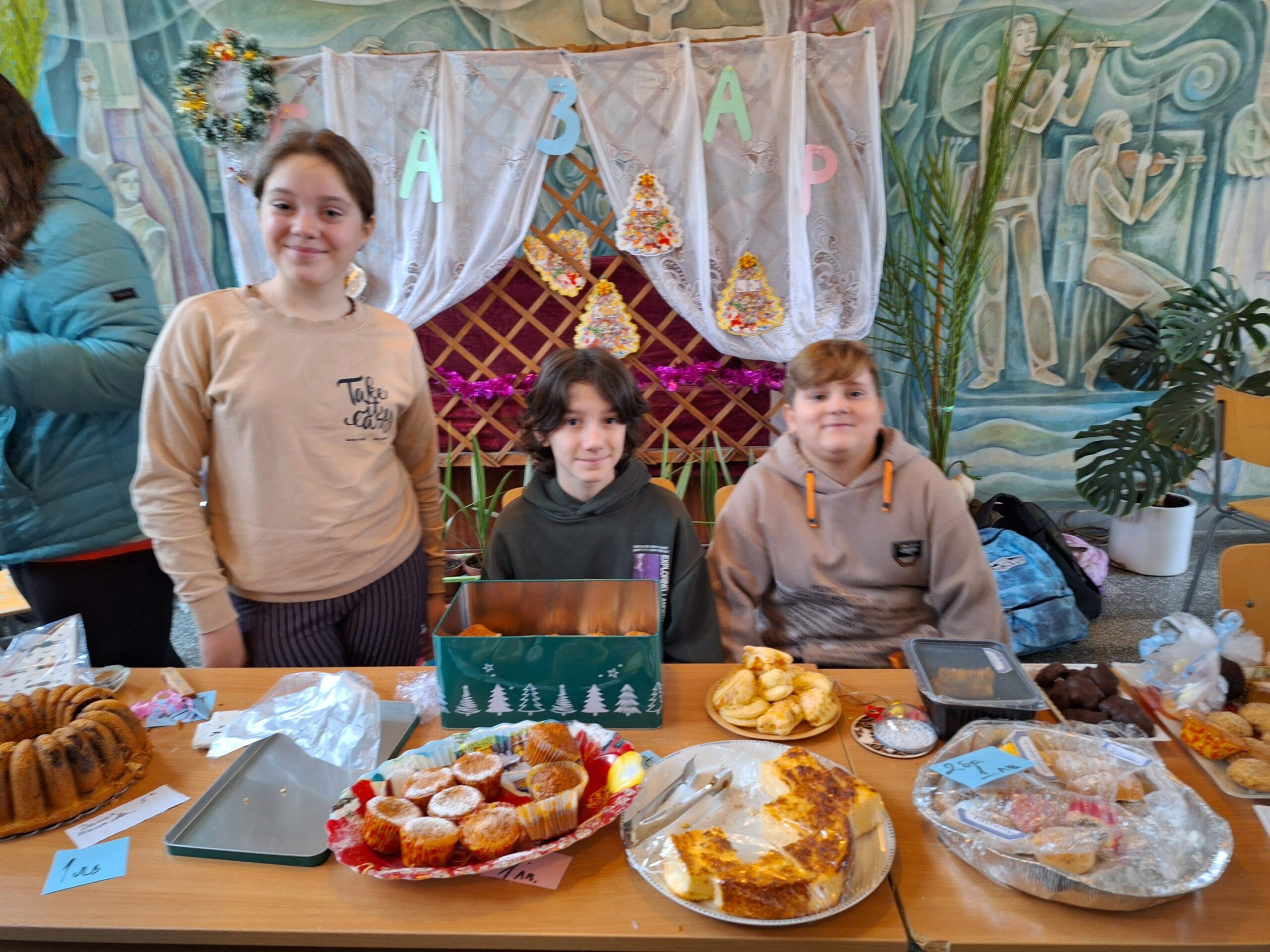 На 15.12 във фоайето на училището за втора поредна година се проведе благотворителен коледен базар, в който се включиха ученици от 5-7 кл. ЦОУД (добре познатата занималня), както и техните преподаватели. Децата подготвиха сладки, соленки, кексчета и всякакви други лакомства, както и ръчно изработени от тях сапуни и сувенири. Събраната сума от 776,60 лв.ще бъде дарена на кампанията “Българската Коледа”. Ученици и учители изказват своята благодарност на всички, които подкрепят инициативата!