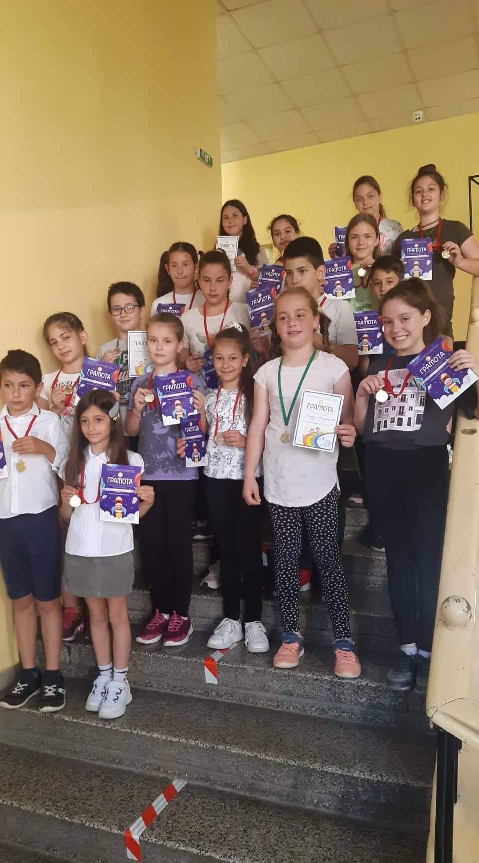 В навечерието на Деня на Светите братя Кирил и Методий, на българската азбука, просвета и култура и на славянската книжовност учениците от Начален етап на СУ “П. К. Яворов “бяха зарадвани с награди. Достигналите до Националното финално състезание, което е организирано от Съюза на българските начални учители, бяха удостоени с медали. Двадесет и двама ученици, достигнали максимален брой точки – със “Златен медал” и грамота, а за 11 от децата отличието е ” Сребърен медал” и грамота за достойно представяне. Гордеем се с вас, ученолюбиви малки ученици!