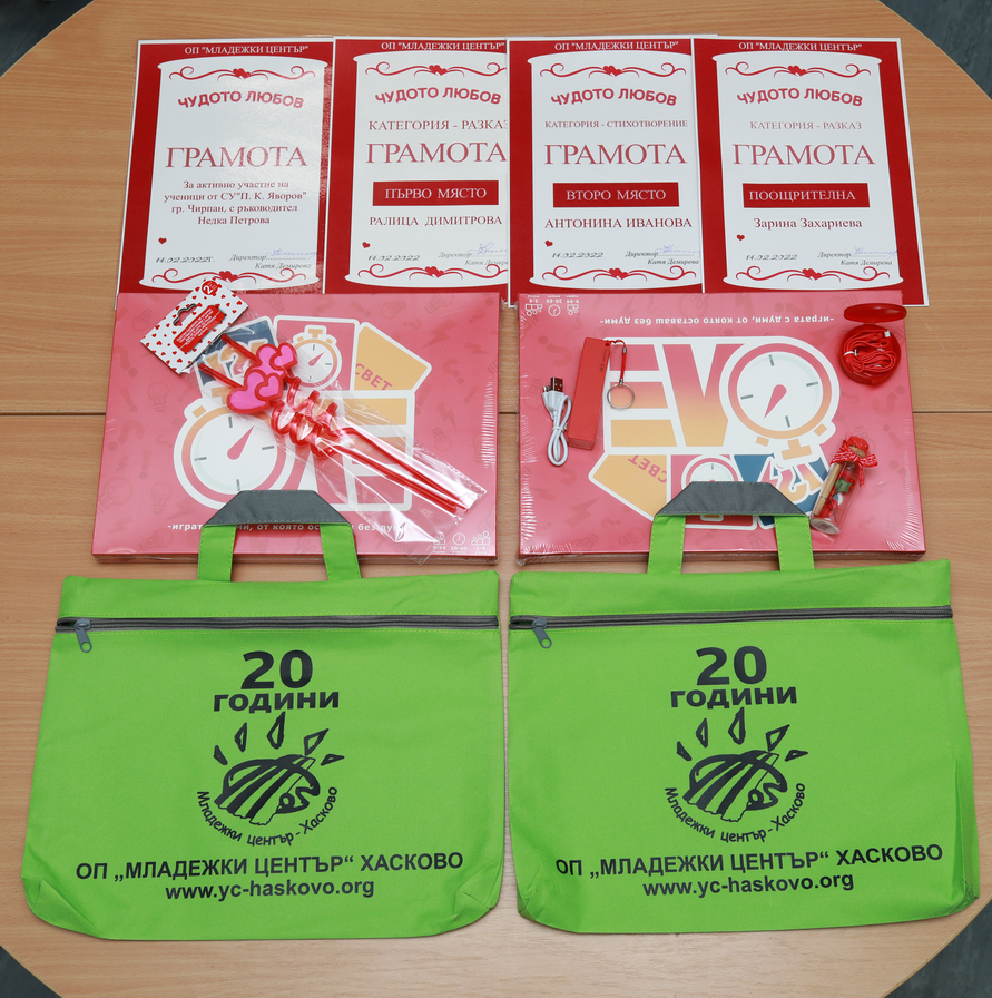 За 15-та поредна година ОП “Младежки център” Хасково, съвместно с РЗИ Хасково организира конкурс „Чудото любов”, посветен на 14-ти февруари-Деня на влюбените. Желаещите да участват в конкурса можеха да представят до три свои произведения във всеки от разделите: стихотворение, разказ и фотография. Участваха младежи на възраст от 14 до 25 години, разделени в две възрастови групи. Във всяка от тях бяха предвидени награди за първо, второ и трето място. Крайният срок за изпращане на творбите бе 7 февруари 2022 година. Наши ученици под ръководството на г-жа Недка Петрова взеха участие…