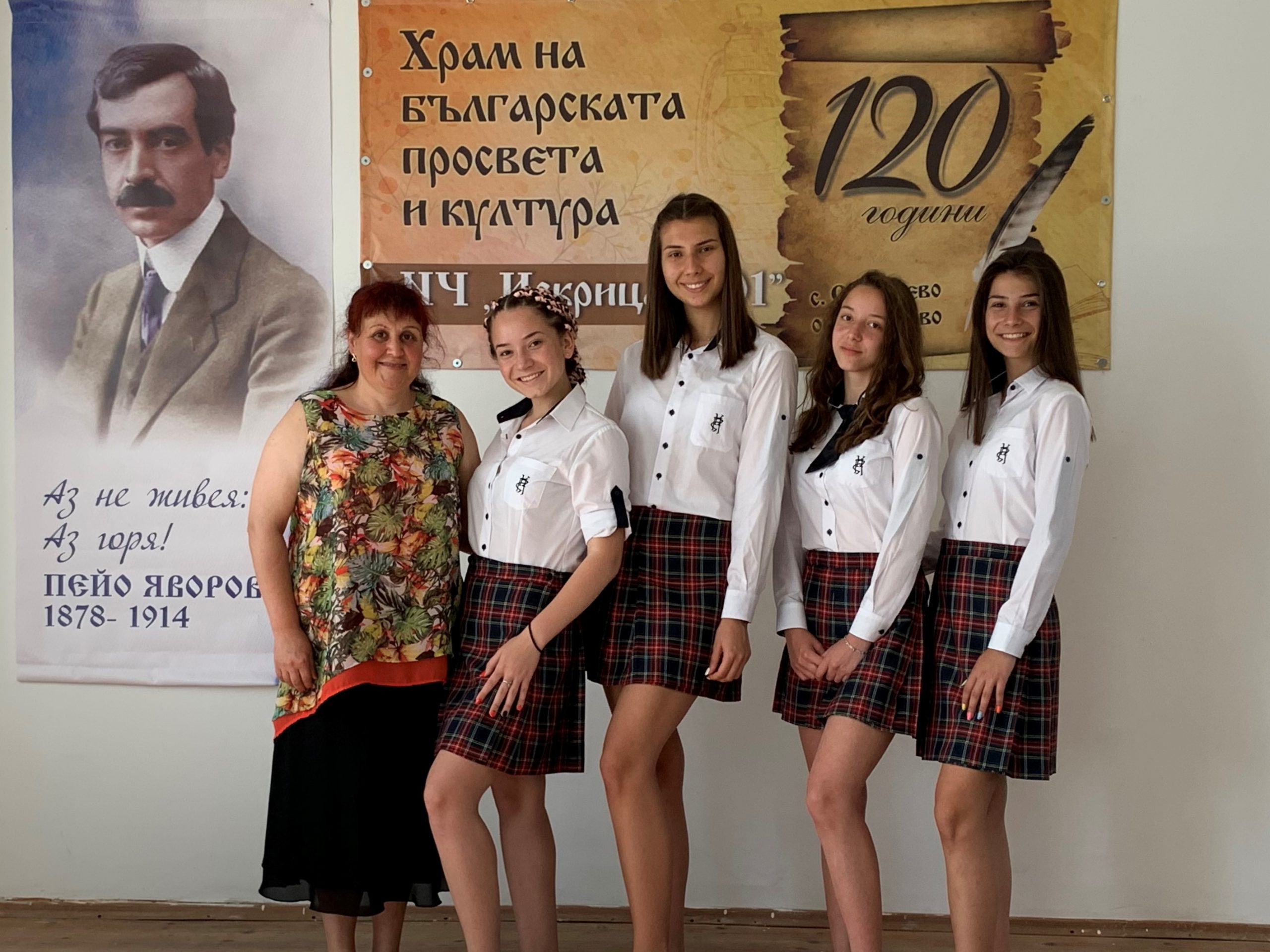 На 04.07.2021г. в с. Скобелево бе отбелязана 120-годишнина на НЧ “Искрица”. По случая бе организирана празнична програма. Основно място в програмата зае Вторият национален конкурс, посветен на поета Пейо Яворов. Наши ученици, ръководени от г-жа Недка Петрова, взеха участие в празничната програма със своите изпълнения, наградени в конкурса. Дария Пламенова Димитрова-8. а клас, стихотворението “Стон” Зарина Миленова Захариева-8. а клас, стихотворението “Благовещение” Ралица Пламенова Димитрова-10. а клас, стихотворението “Луди-млади” Антонина Рускова Иванова- 10. а клас, стихотворението “Може би” Младите рецитатори плениха сърцата на присъстващите и бяха заслужено аплодирани.