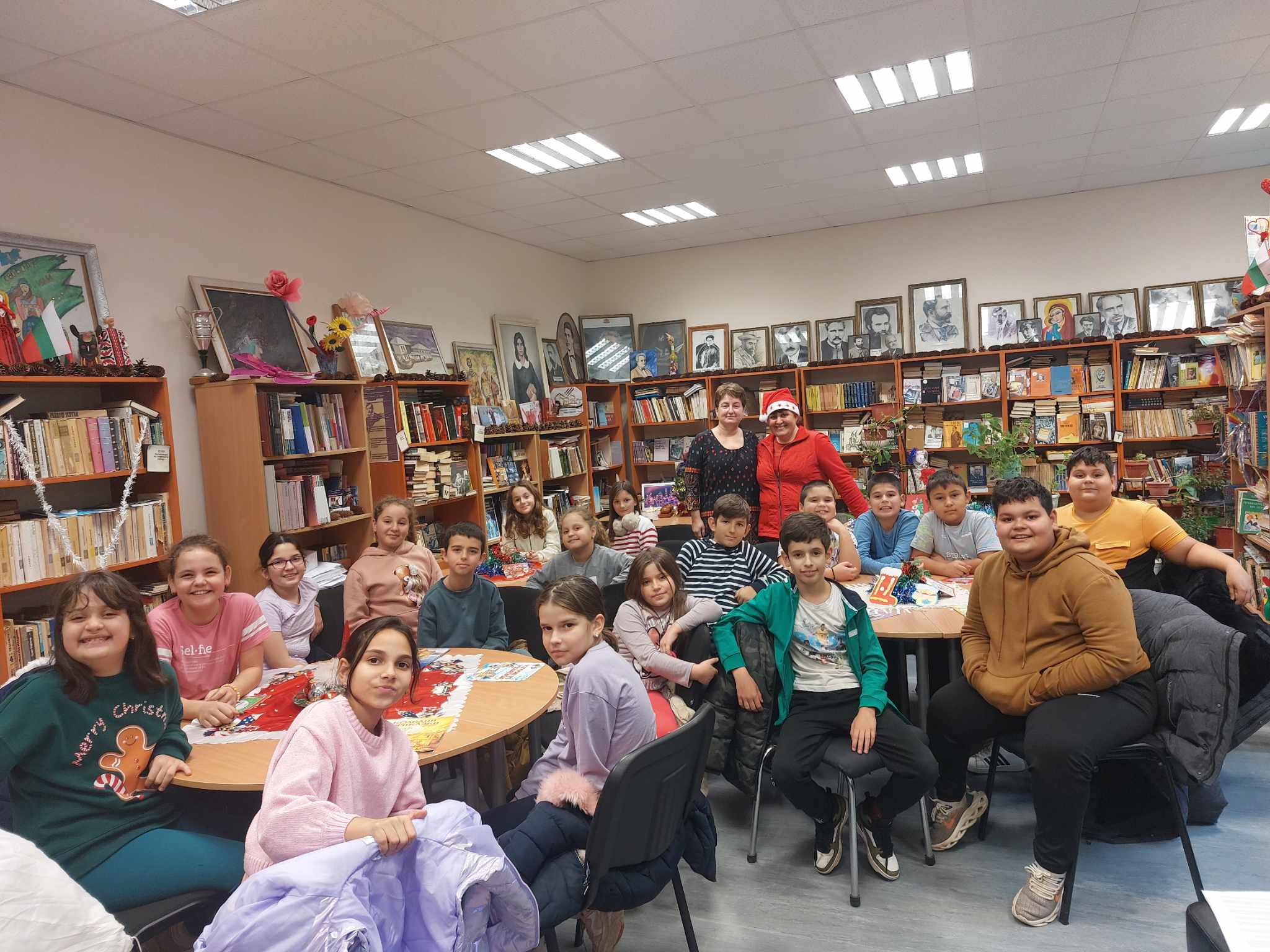 По традиция и тази година в училищната библиотека се проведе Голямото Коледно четене, което започна от 17.11. в Деня на четенето в България с гостуването на прекрасните деца от 2. „Б“ група- „Бонбон“ при ДГ “Слънце”, гр. Чирпан. Цели три седмици възпитаниците на гимназията от ПДГ, 1. „а“, 1. „б“, 1. „в“, 2. „а“, 2. „в“, 3. „а“, 3. „б“, 3. „в“, 4. „а“ клас, придружени от своите ръководители рецитираха коледни стихове, пяха коледни песни, изпълниха коледарски и сурвакарски наричания. Гостите се насладиха и на Коледното четене на библиотекаря. Скъп гост на инициативата за поредна година бе г-жа Ваня Петрова-Управител на ЦОП-Чирпан, която дари на училищната библиотека снежен човек и книгата „Сурвакарска книжка на българското дете“.