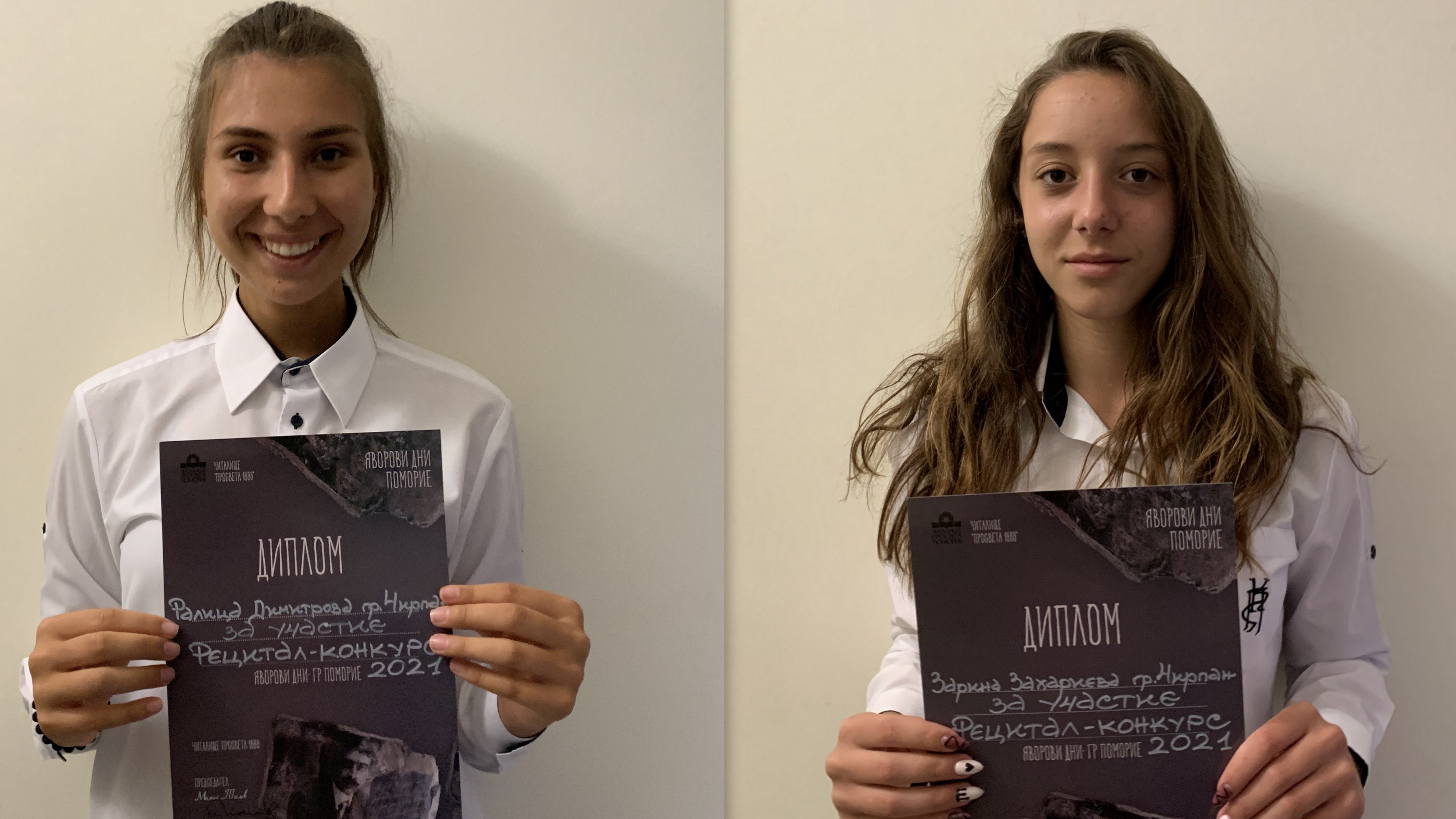 Другите четирима представители на училището и община Чирпан бяха Иванина Иванова от 5. в клас, която разказа на публиката “Бабина приказка“, Никол Атанасова също от 5. в клас и “Овчарска песен”, Спас Ангелов от 7. а клас и “Павлета делиа и Павлетица млада” и Минчо Денев от 11. б клас, който “изпя” Яворовите “Хайдушки песни“. Иванина, Никол и Спас се включиха в надпреварата и с изпълнението на “Калиопа“, което им донесе и първото място в категорията Групови изпълнения, а Спас Ангелов беше удостоен за своето индивидуално изпълнение с наградата на Фондация “Яворов”.