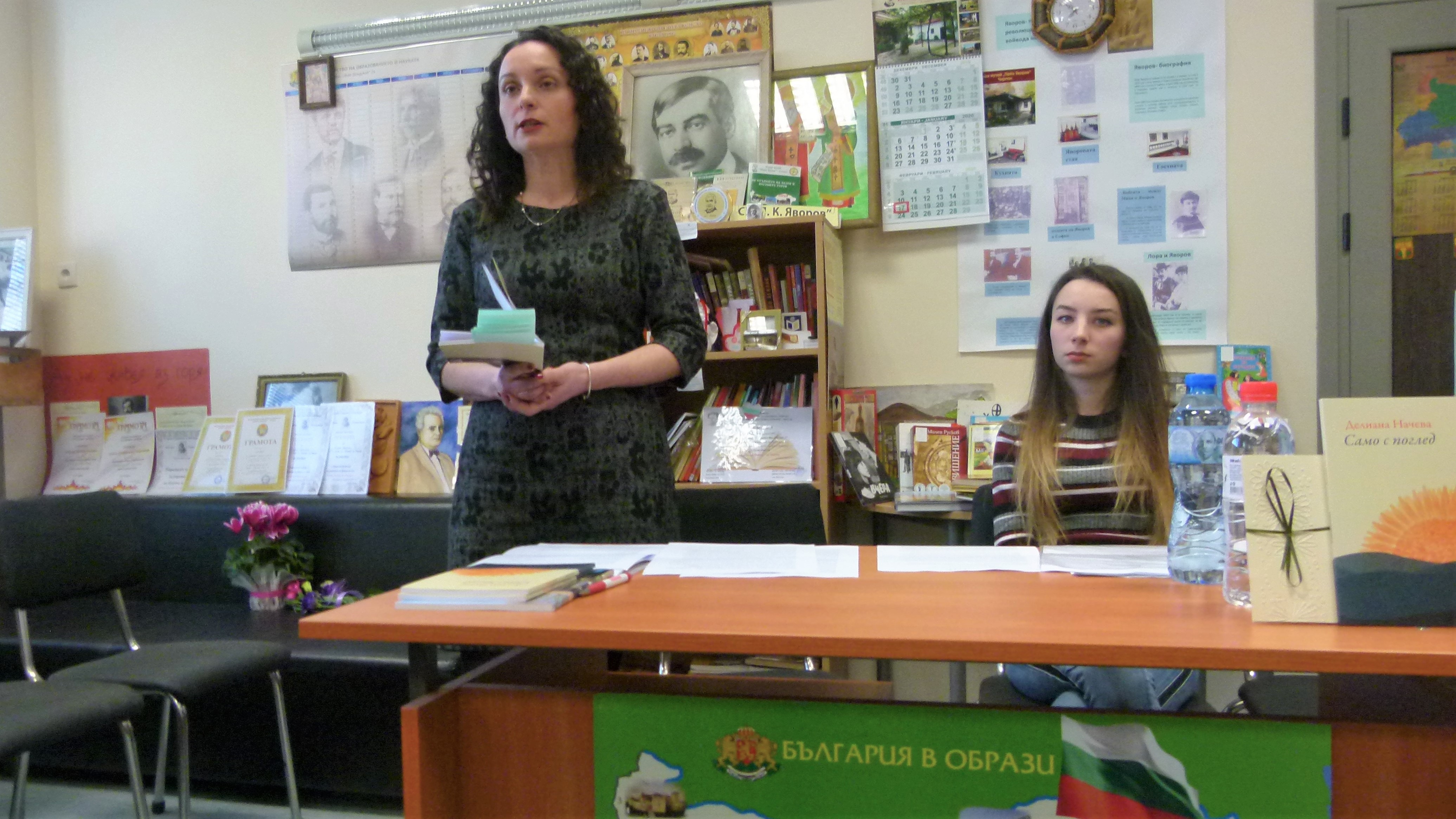 На 17 февруари 2020 г. от 13:30 часа в залата на училищната библиотека на СУ „П. К. Яворов“ гостува поетесата Делиана Начева, уредник в Къща музей „Пейо К. Яворов“, гр. Чирпан. Поводът бе премиерата на стихосбирката „Само с поглед“. На събитието присъстваха: г-н Тодор Иванов, главен експерт „Култура“ в Община Чирпан, председател на фондация „Яворов“, член на училищното настоятелство, г-жа Е. Петрова, пом.-директор, г-жа Е. Иванова, г-жа Л. Стайкова, г-жа П. Николова, преподаватели по БЕЛ, г-н Й. Йорданов, преподавател по философия, г-жа С. Колева, преподавател по история и цивилизации, ученици от 7“а“, „б“, 9.“б“ клас, близки на поетесата, граждани.