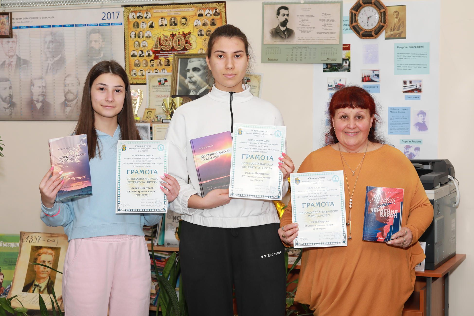 специални награди за СУ "П. К. Яворов", гр. Чирпан в Седмия национален конкурс за рисунка и литературна творба, посветен на 3. Март-144 години от Освобождението на България