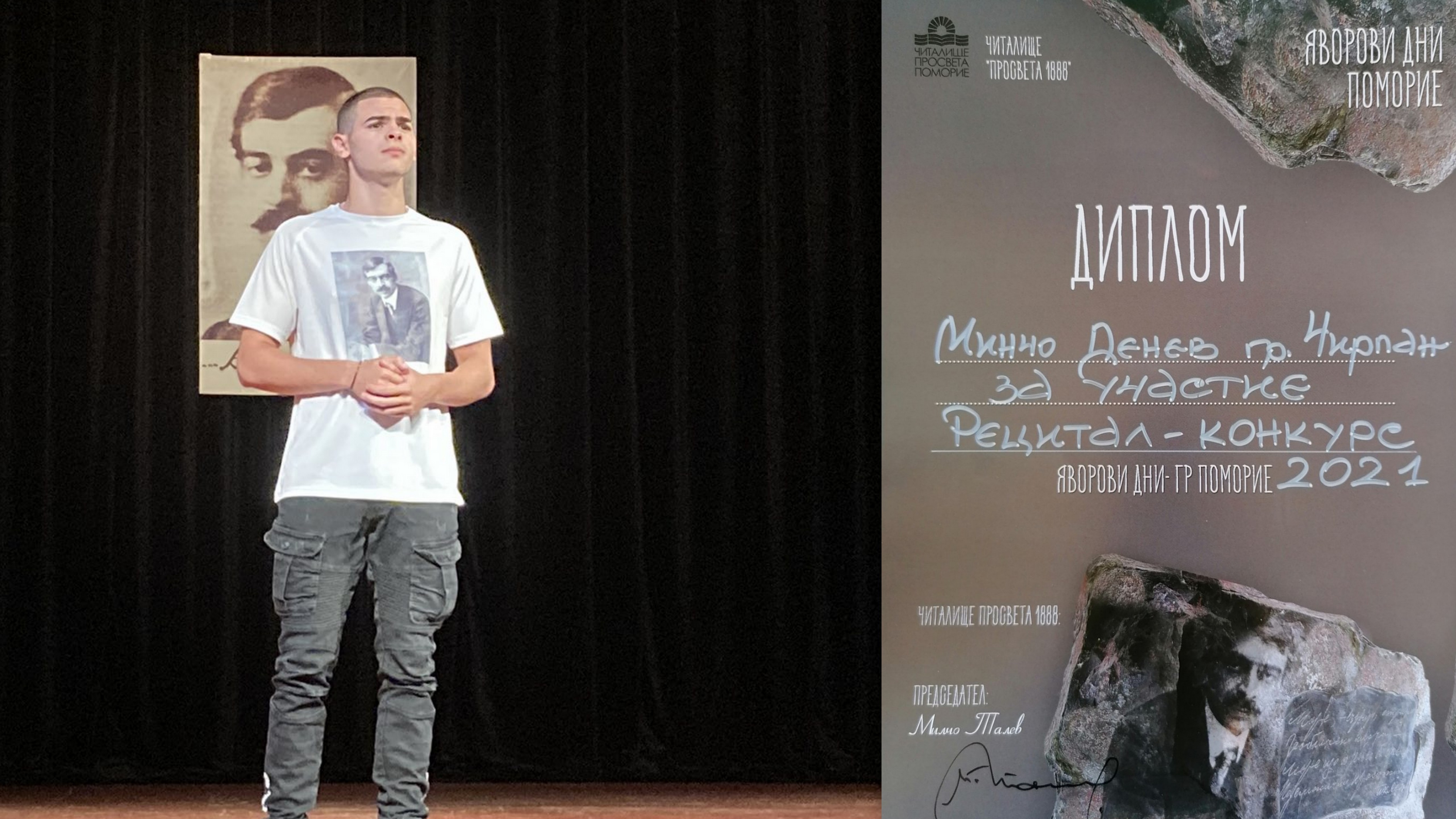 Другите четирима представители на училището и община Чирпан бяха Иванина Иванова от 5. в клас, която разказа на публиката “Бабина приказка“, Никол Атанасова също от 5. в клас и “Овчарска песен”, Спас Ангелов от 7. а клас и “Павлета делиа и Павлетица млада” и Минчо Денев от 11. б клас, който “изпя” Яворовите “Хайдушки песни“. Иванина, Никол и Спас се включиха в надпреварата и с изпълнението на “Калиопа“, което им донесе и първото място в категорията Групови изпълнения, а Спас Ангелов беше удостоен за своето индивидуално изпълнение с наградата на Фондация “Яворов”.