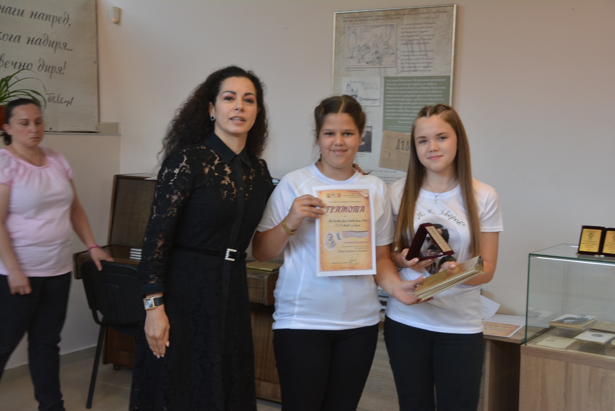 Първо място: Иван Ангелов Ангелов, Таня Тенева Ангелова, Александра Радостинова Манева и Деси Ивова Митова с поетичната композиция „Сън прокоба”