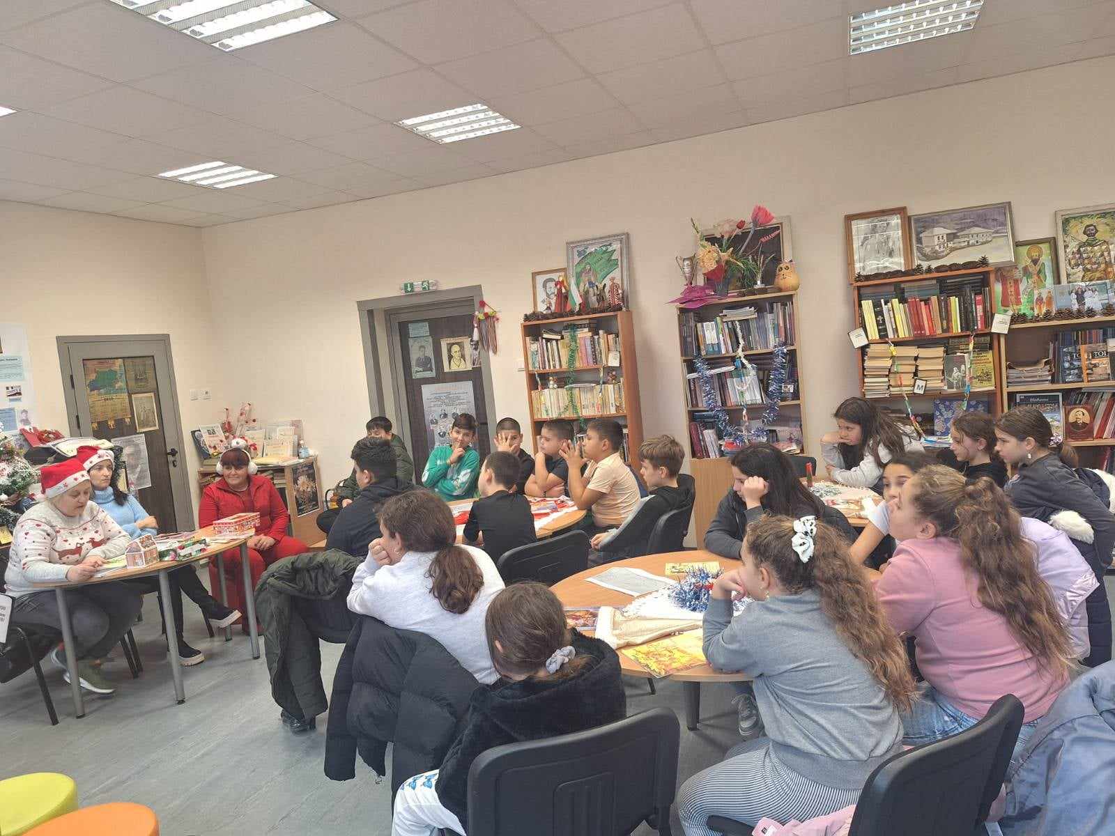 От 12.12. до 20.12. магията на Коледа отново превзе библиотеката и класните стаи на ПДГ, 1. а, б, в; 2. а, б; 3. б; 4. а, б, в клас. По традиция скъпи гости бяха г-жа Маргарита Бурова – инспектор ДПС и г-жа Ваня Петрова-Управител на ЦОП, които, освен че се включиха усърдно в мероприятието, подариха на децата книжки и лакомства. Библиотекарят чете коледни стихчета и приказки. Доволни и щастливи, учениците пяха и рецитираха, изричаха коледарски благословии.