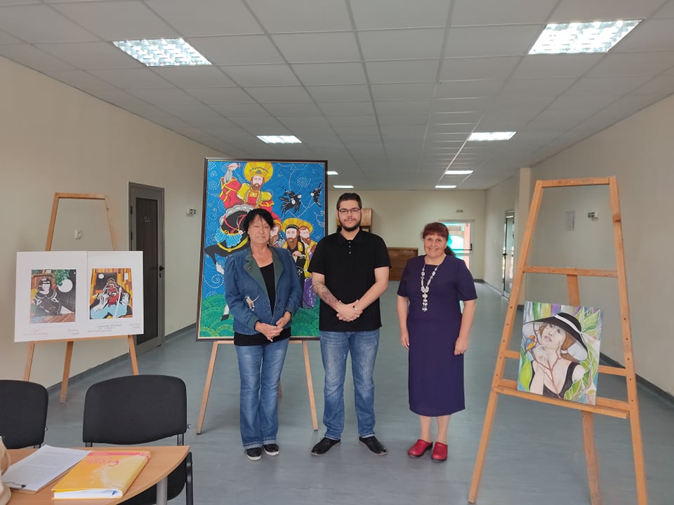 В началото г-жа Понева предствави на заинтересованите ученици три свои картини и изнесе кратка лекция на тема: “Изкуството като живот”. След това изтъкнатата художничка-член на Съюза на българските художници, носител на наградите “Конкстантин Величков” и “Неофит Рилски”, промотира своят талантлив ученик-Даниел Киров. Младият творец представи картината си “Просвещение”, формат: 1,50м./1,00м., техника-акрилни бои На картината е изобразен Свети Княз-Борис I-Михаил български владетел, който налага християнството и въвежда славянската писменост в България. До него са и Климент, Наум и Ангеларий. Това са личностите, създали просветната книжовна дейност. Изобразен е моментът,в който князът посреща учениците в българските земи-Плиска. Картината е участвала в международен конкурс “Българската азбука” в град Варна и е спечелила седмо място сред над 300 участници. Ученикът на г-жа Колева от дете е участвал в училищни и международни изложби. Спечелил е 2-ро място на Международен конкурс в Малага-Испания. Стилът му на рисуване “Юкио-е”-“Картини на плаващия свят”, идва от далечна Япония. Свързва се с изобразяване на самураи, сумо борци, актьори, певци, красиви жени и щипка еротика. Този стил е силно декоративен. Младият творец сподели, че използва всички налични цветове, работи предимно вечер, и традиционно, и дигитално. Негови вдъхновители са-г-жа Елена Понева, г-н Никола Манев, г-жа Виолета Велчева и художниците Ким Джунг Джи, Кацушики Хокусай, Андо Хирошиге и Китагава Утамаро.