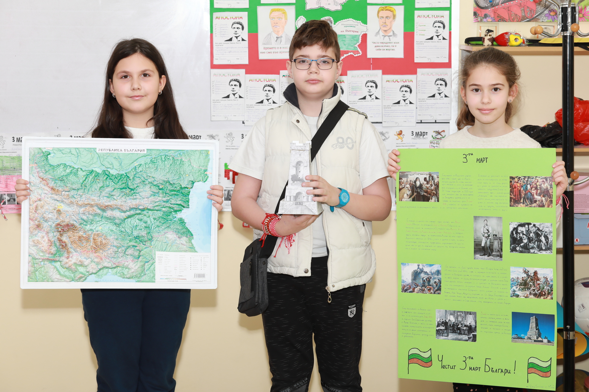 Всеки един от класовете в начална училищна степен и ПДГ подготви табла, проекти, рецитал със стихове за празника. Всеки ученик изработи макет на Паметника на свободата-Шипка.