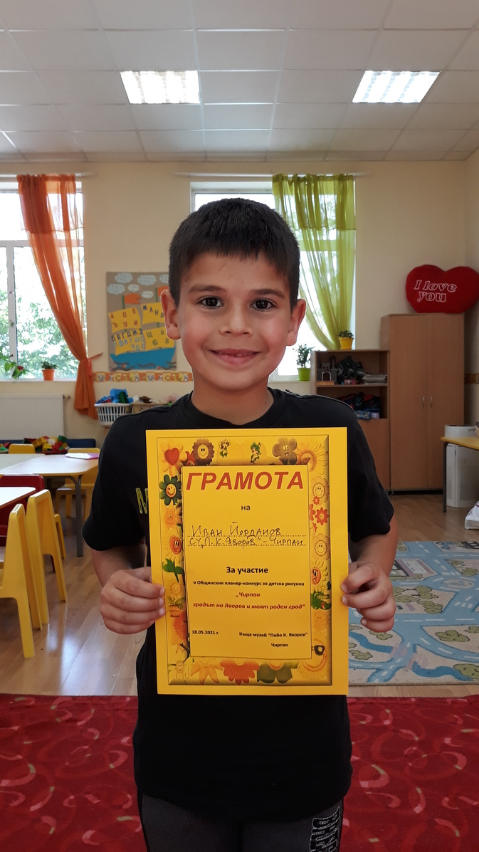 В деня на музеите 18 май най-малките възпитаници на СУ “П. К. Яворов” от подготвителната група рисуваха в родната къща на поета Пейо Яворов. Пленер- конкурсът беше на тема “Чирпан – градът на Яворов и моят роден град”. В него участваха: Елица Николаева Танева, Гено Иванов Иванов и Иван Николаев Йорданов. За децата денят беше изпълнен с много забава и положителни емоции. Те рисуваха на откритата сцена в дома на поета и получиха високи оценки от художниците Владимир Кондарев и Пламен Ангелов. За успешното си представяне бяха наградени с грамоти и подаръци.