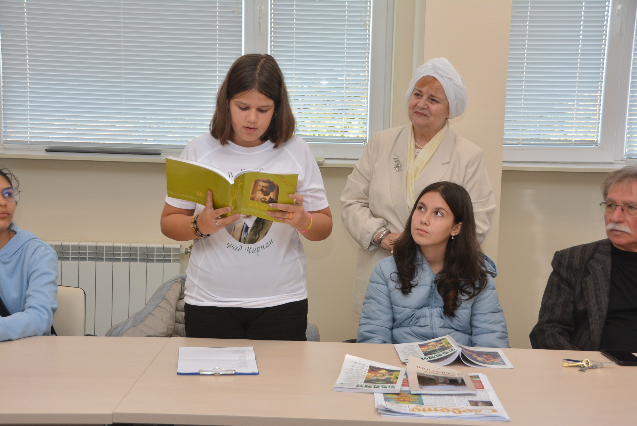 Ученичката от 7. „б“ клас Мария Георгиева Ангелова, чиито творби са публикувани във в-к „Словото –днес“ на Съюза на българските писатели, прочете новото си стихотворение „Болка“, написано специално за случая.