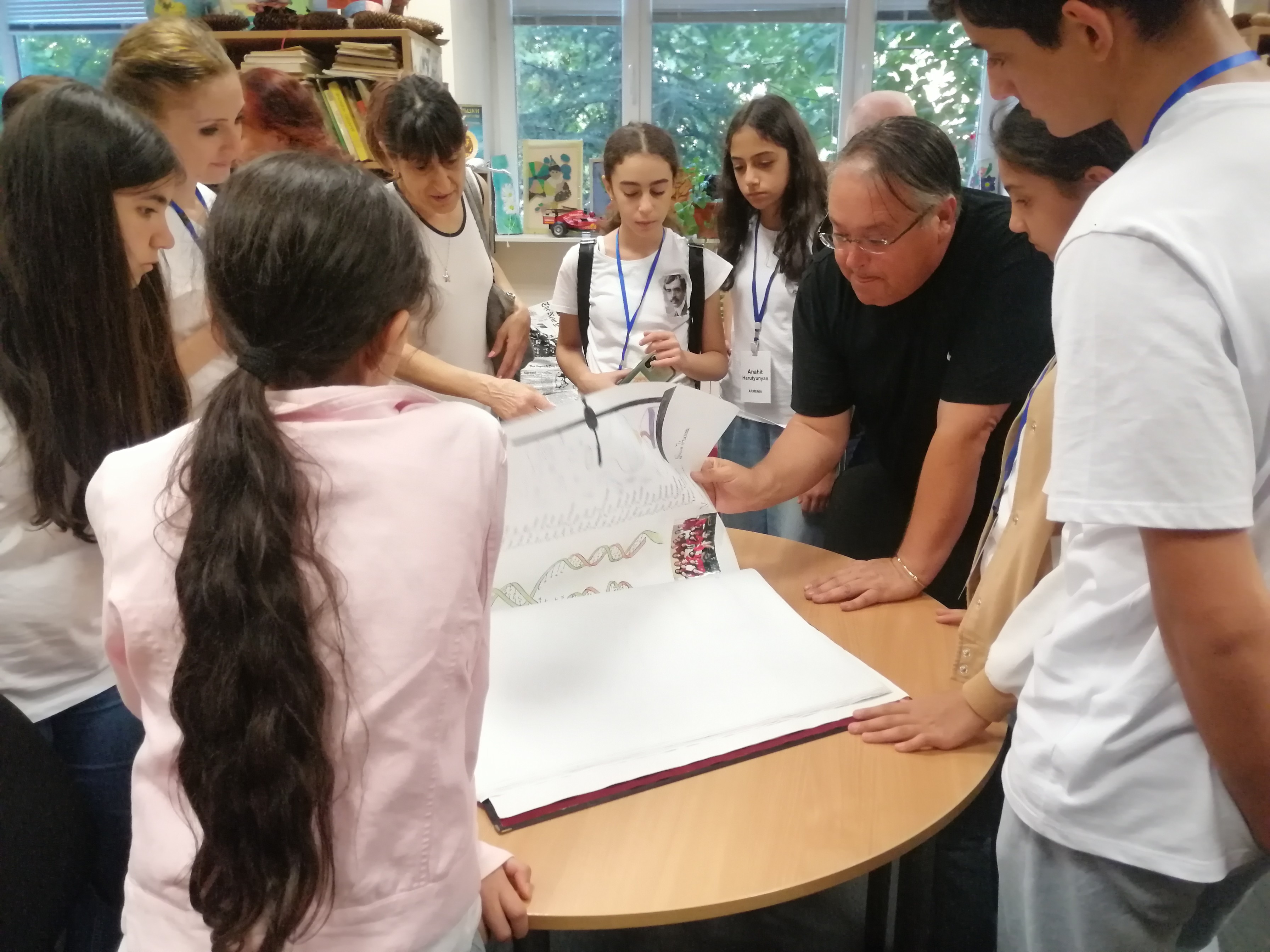 Арменците проявиха голям интерес към експозицията от картини, награди, плакети и грамоти. След топлото приветствие, в което накратко запозна присъстващите с историята на училището, паралелките и начина на обучение, директорът подари картина, изработена от вълна, и книга.