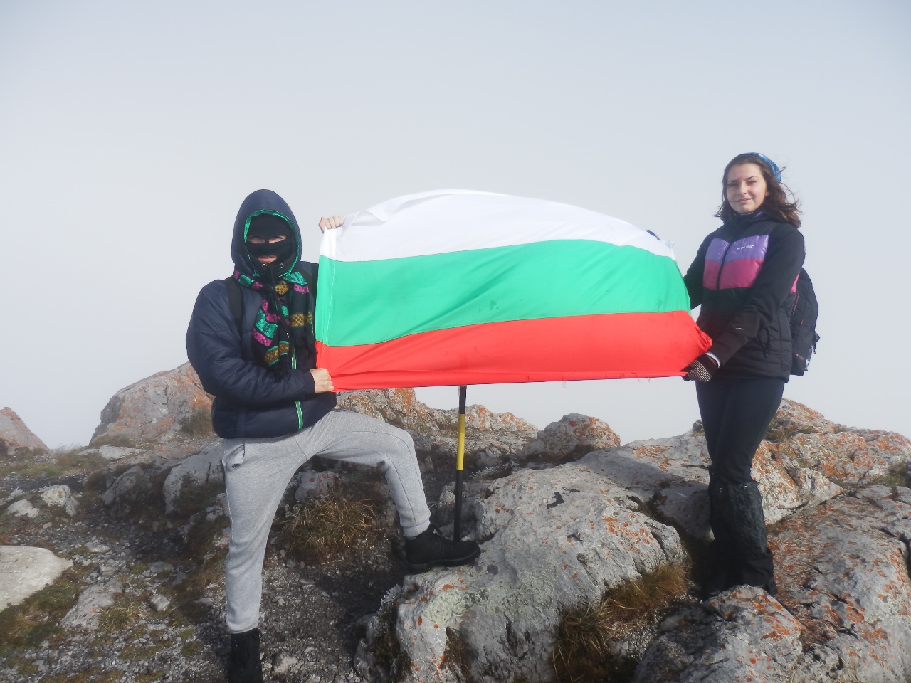 През втория ден на екскурзията проявихме туристическите си възможности. В гъста мъгла и сняг успяхме успешно да покорим връх Шипченски Исполин – 1524 м.н.в. Това се случи и благодарение на нашия водач Иван Мечев, който въпреки затруднените условия не се отказа, намери вярната посока и ни заведе на върха, където мъглата се вдигна и пред нас се разкриха приказни гледки към най-високите части на Стара планина. Въпреки силния вятър на върха всички с чувство на гордост се надпреварвахме да си правим снимки с националния флаг. Най-емоционално за нас обаче беше слизането от върха. Тъй като много се пързаляше и беше почти невъзможно да се върви, момчетата правеха пързалки, а момичетата се спускахме с дъждобраните надолу. Доволни и мокри до кости се прибрахме в топлата хижа. След кратка почивка, игри на закрито, поотпочинали, се отправихме към Географския център на България.