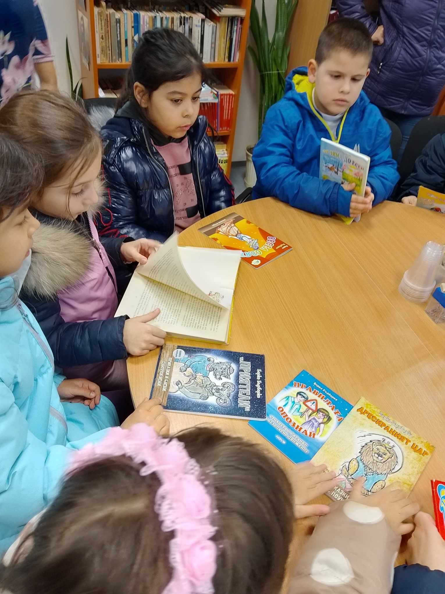 В библиотеката на училището гостуваха група деца от 2. „Б“ група- „Бонбон“ при ДГ “Слънце”, гр. Чирпан, придружени от техния директор-г-жа Милена Стефанова, старши учители Даниела Енчева и Румяна Кирова, пом.-възпитател Росица Маринова.